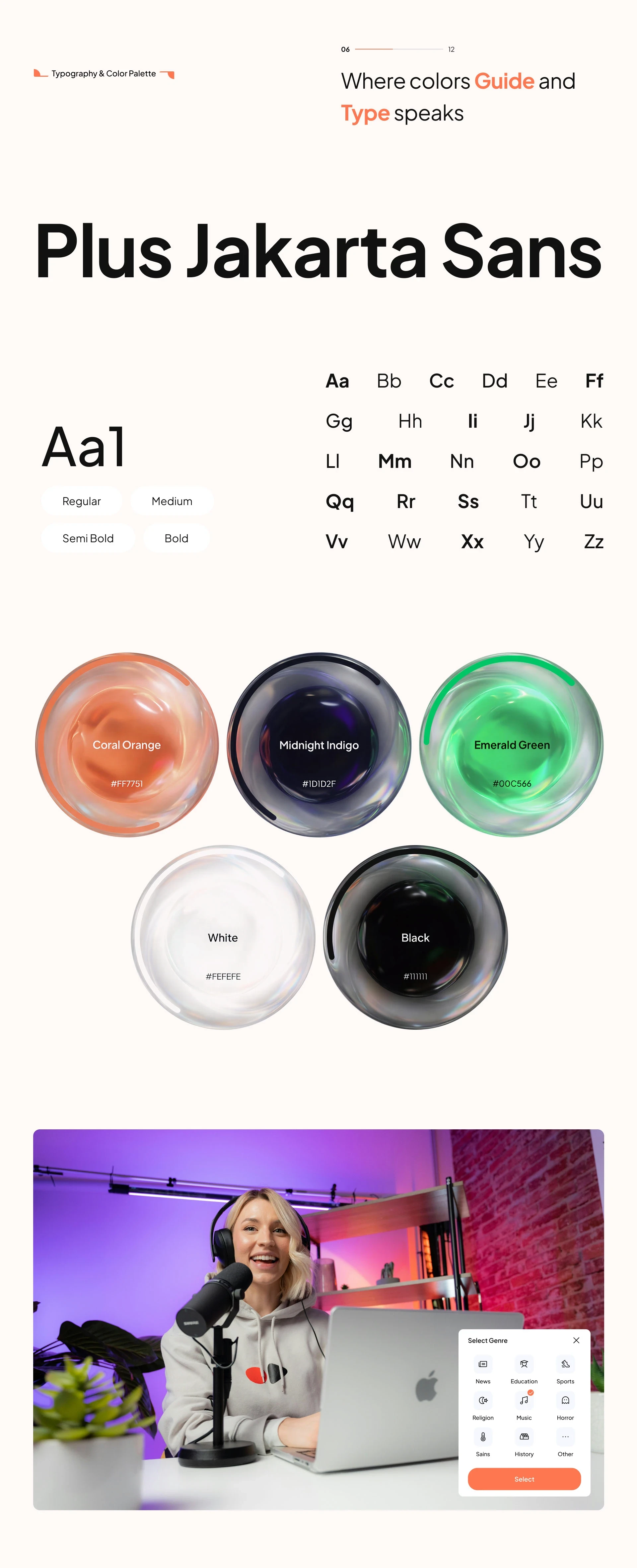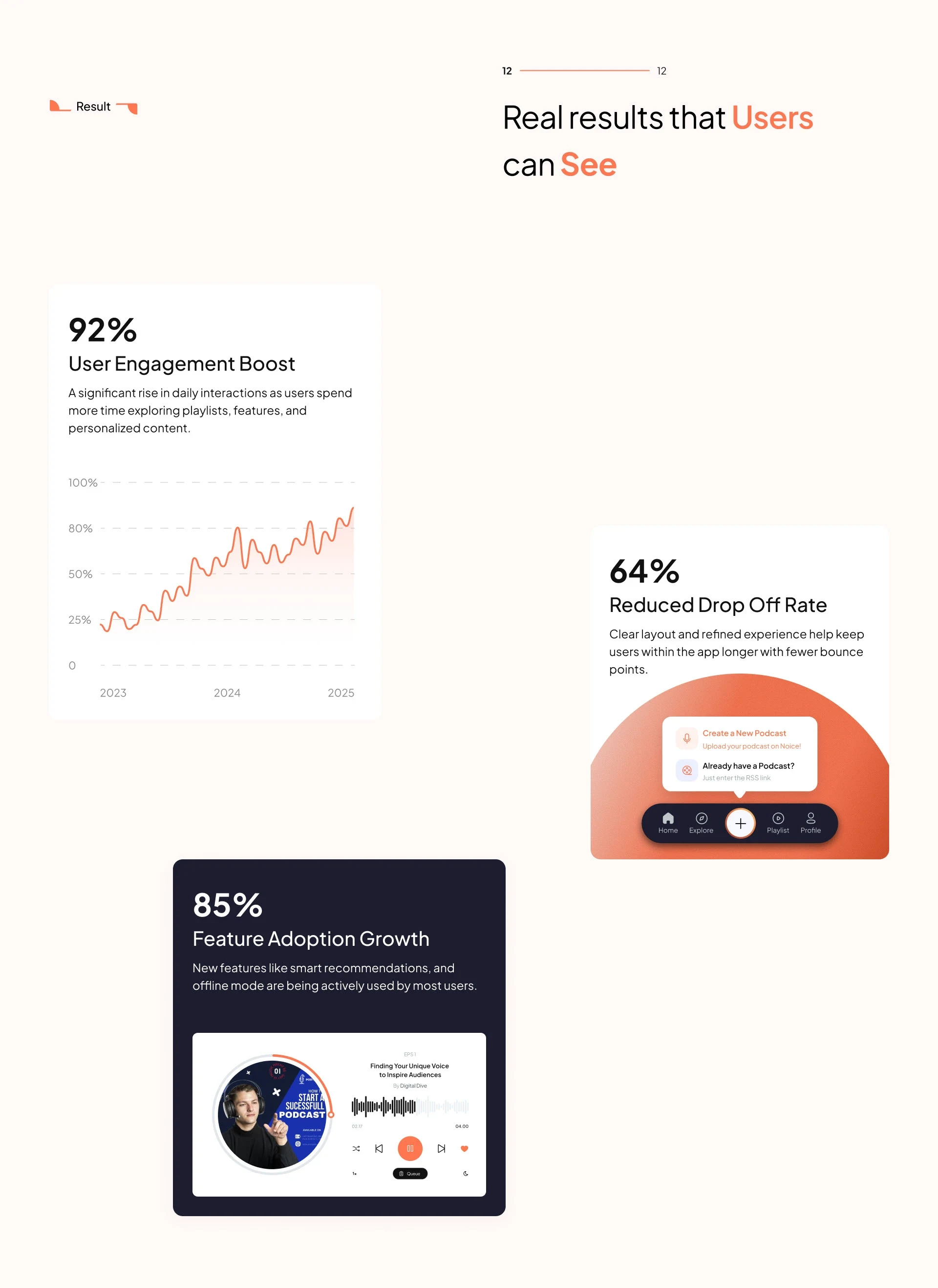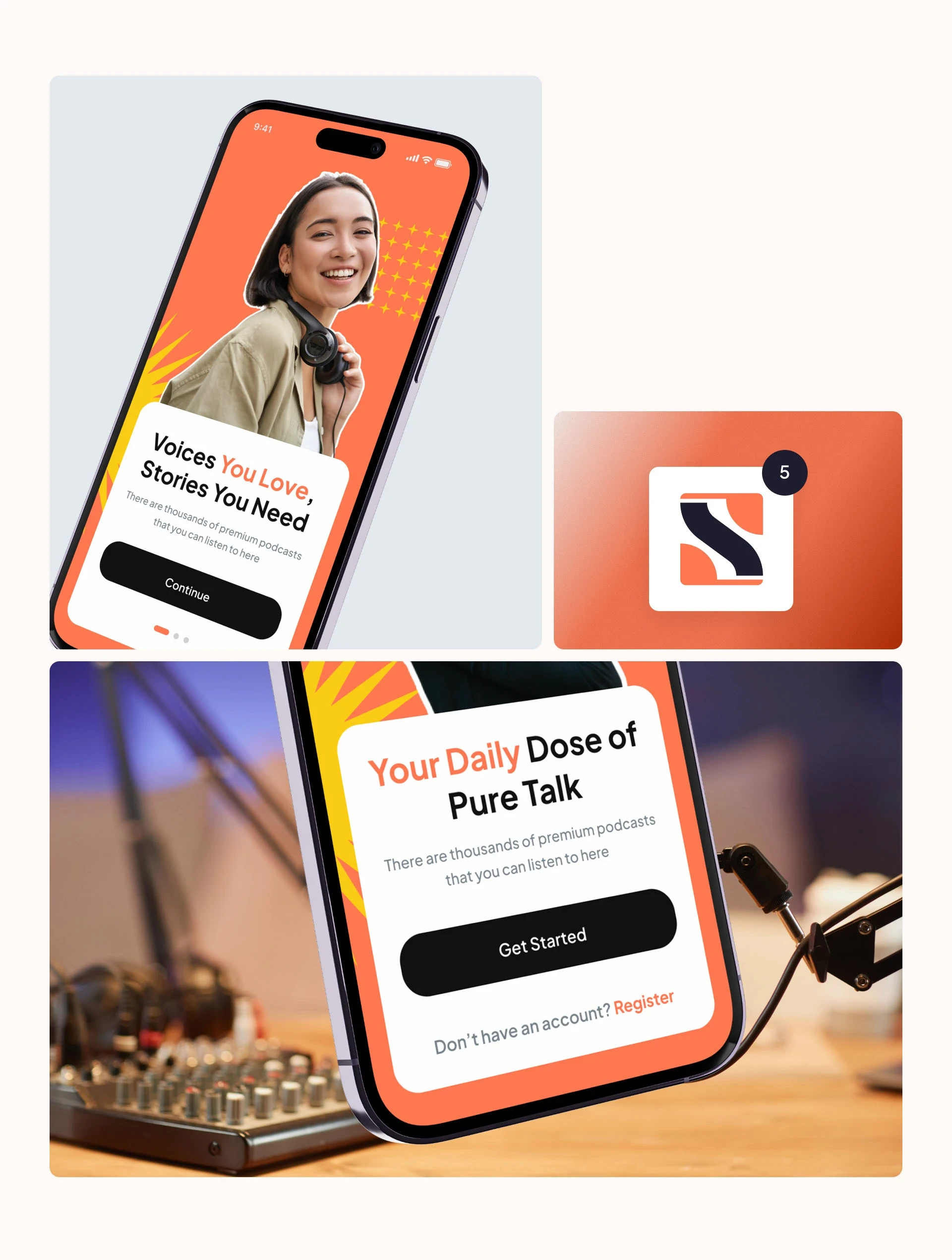 A next-gen podcast app concept designed to simplify creating, sharing, and listening — with a clean UI and strong brand system.