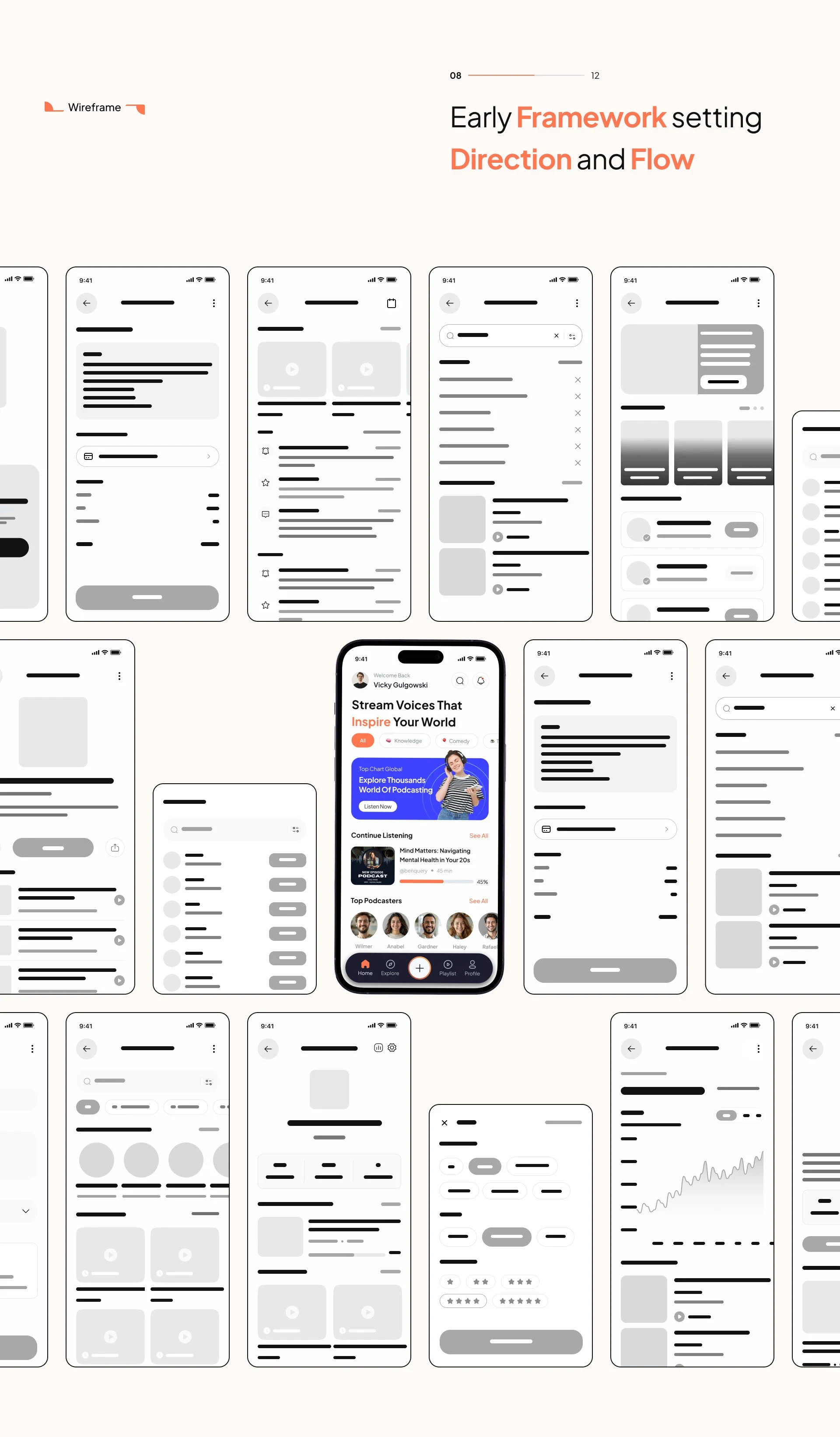 Wireframes that lock direction before visuals.