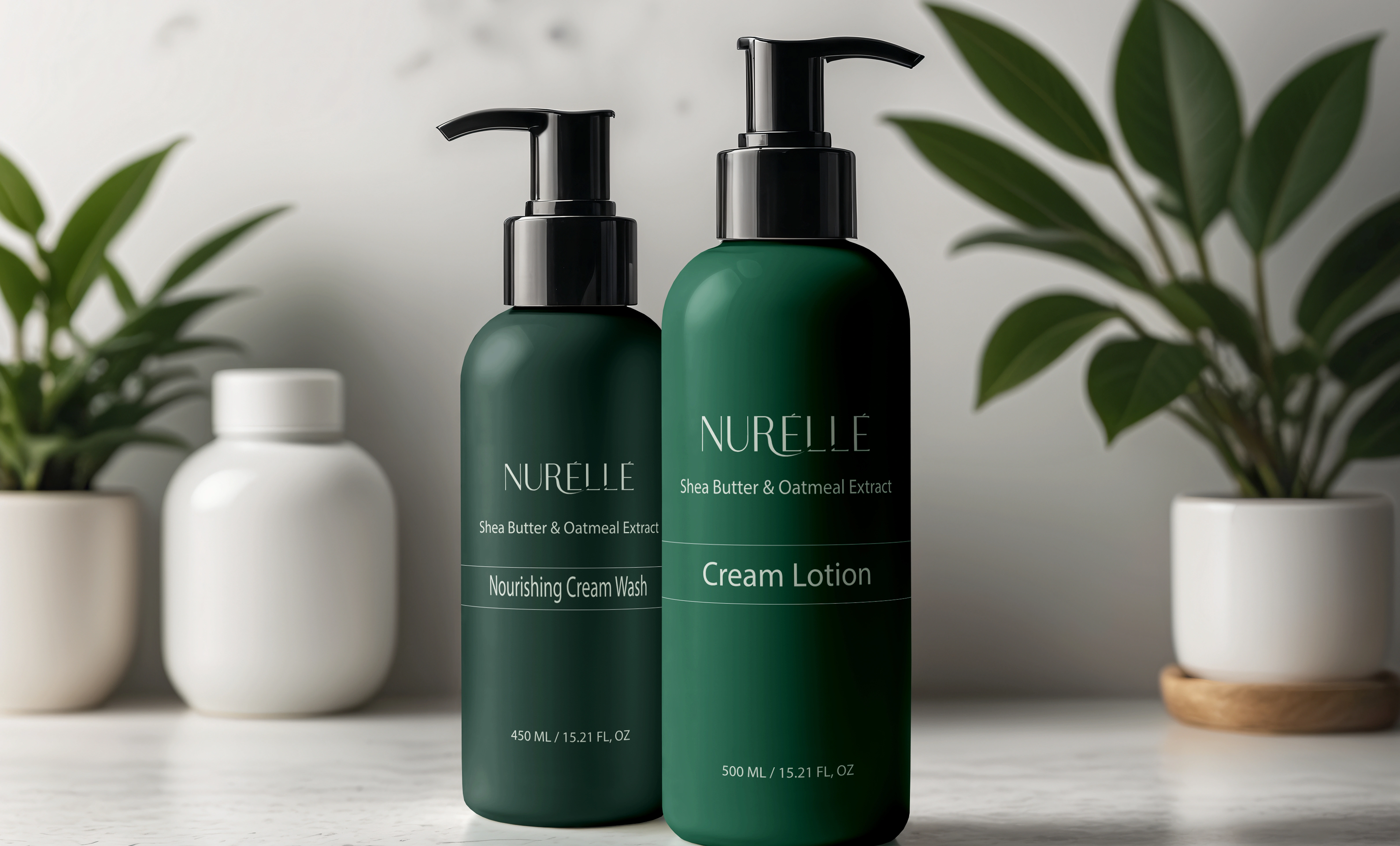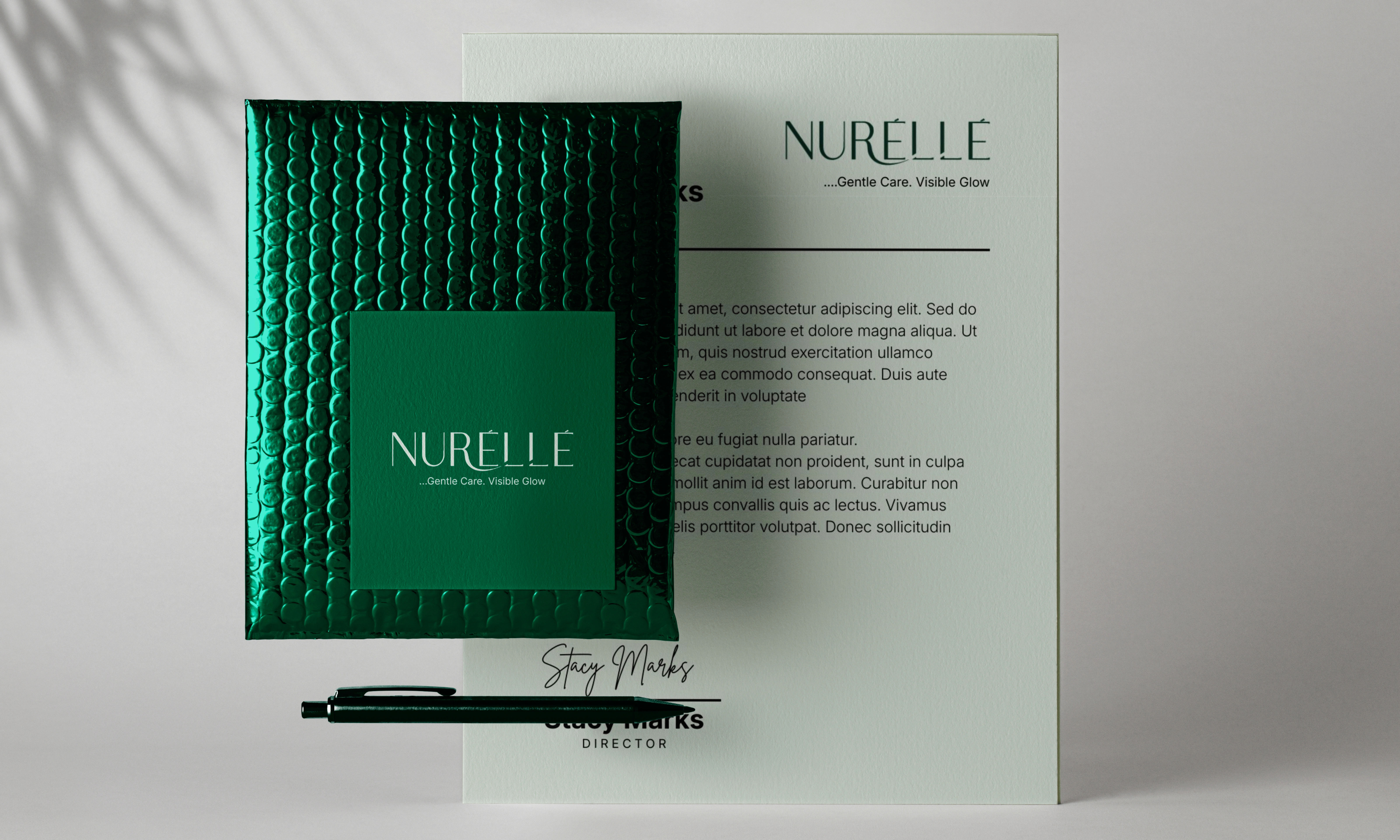This unified brand system gives NURELLE a strong visual presence, helping it stand out as a sophisticated, trustworthy skincare brand while celebrating the purity and gentleness of its ingredients.