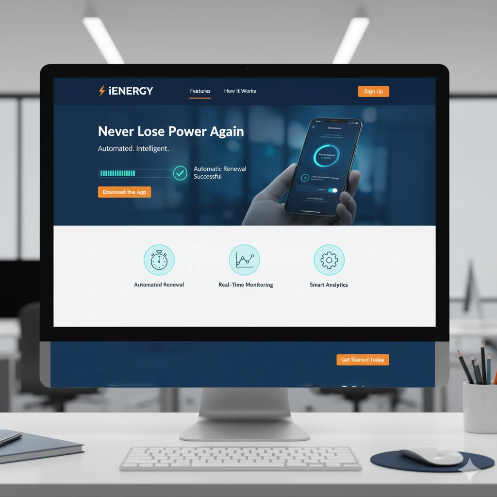 Goal: Develop an automated energy management platform that eliminates manual processes, provides consumption insights, and ensures continuous power supply through intelligent monitoring and automatic renewals.