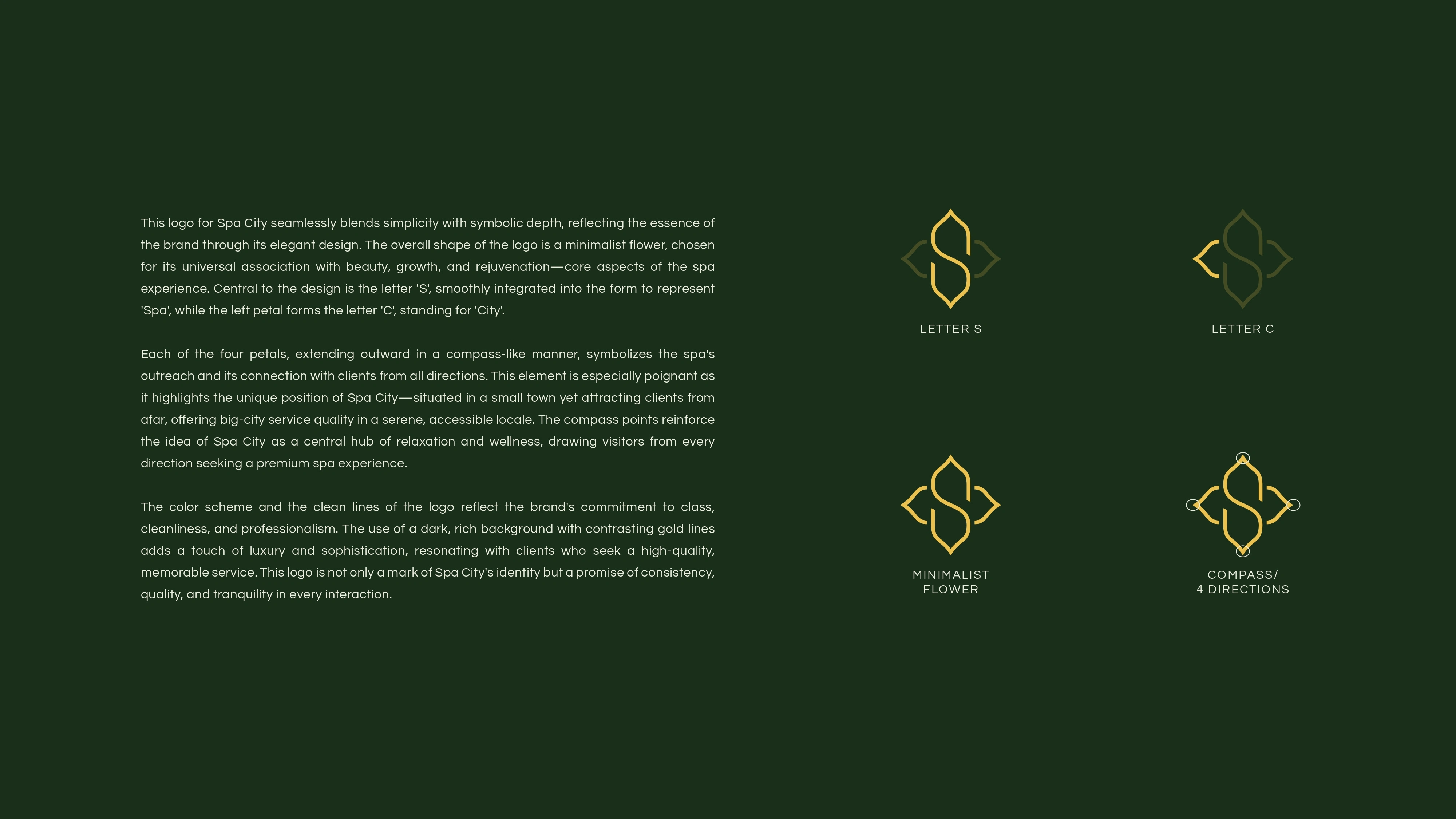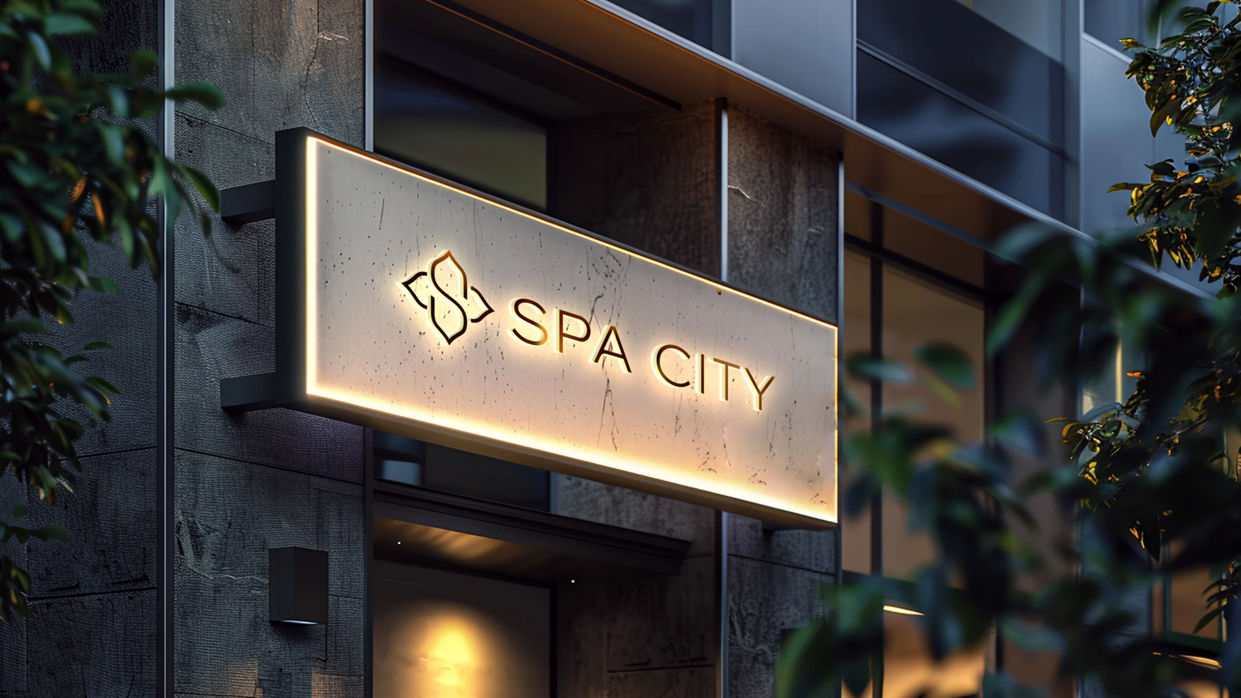 Designed Spa City’s brand identity with a minimalist floral mark merging S and C, supported by calm, luxurious visuals for a premium spa experience.