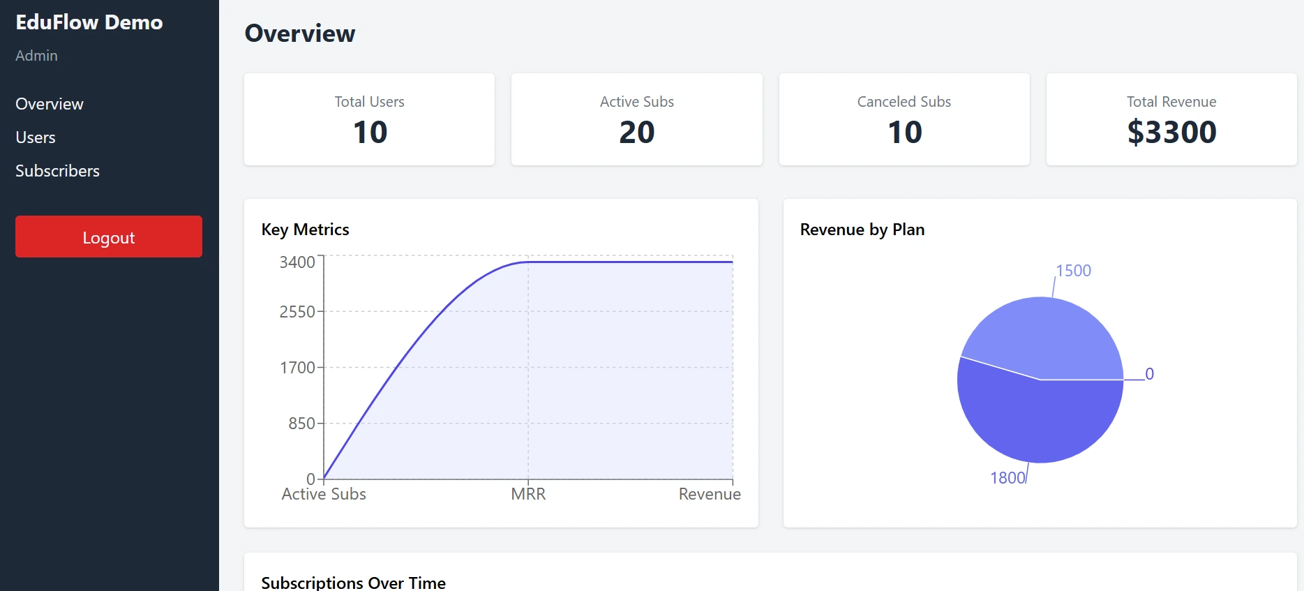 Complete admin panel with user management, KPI tracking, and instant search. Manages 1,000+ records with sub-100ms response time.