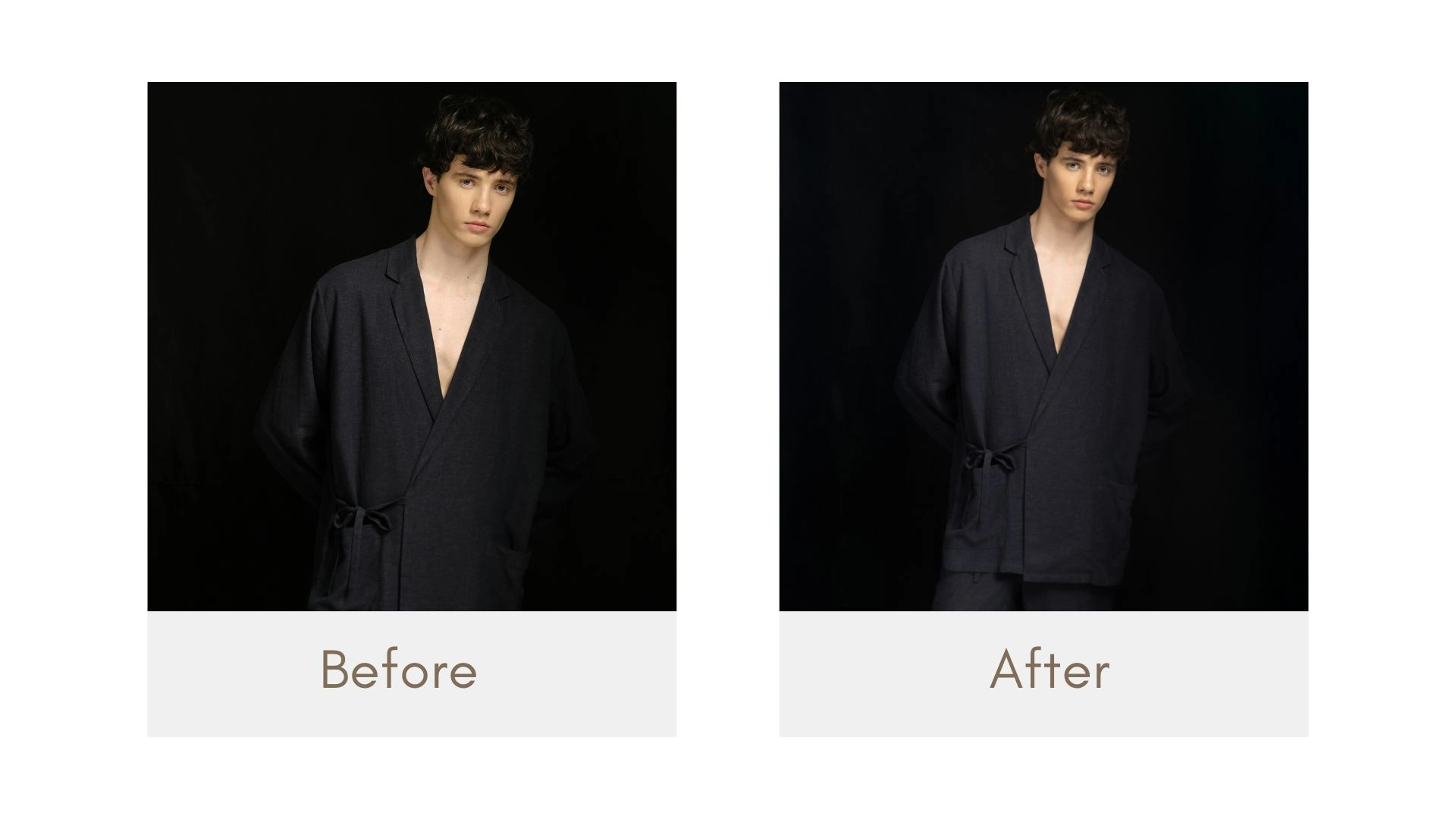 Natural skin cleanup (blemishes, tone balance) and light color correction for brand "Maktub"