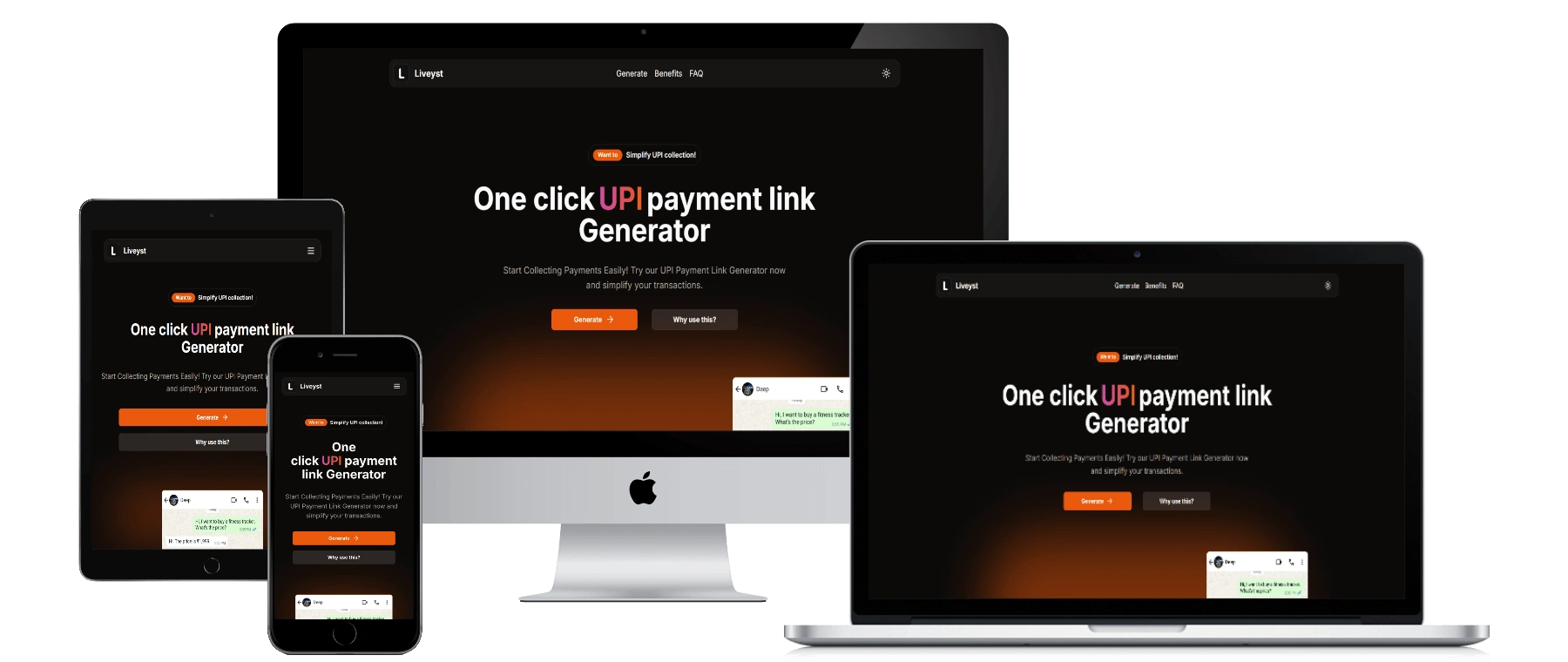 Generate a secure UPI payment link in just a few clicks and start receiving payments instantly. Works seamlessly with all UPI apps.