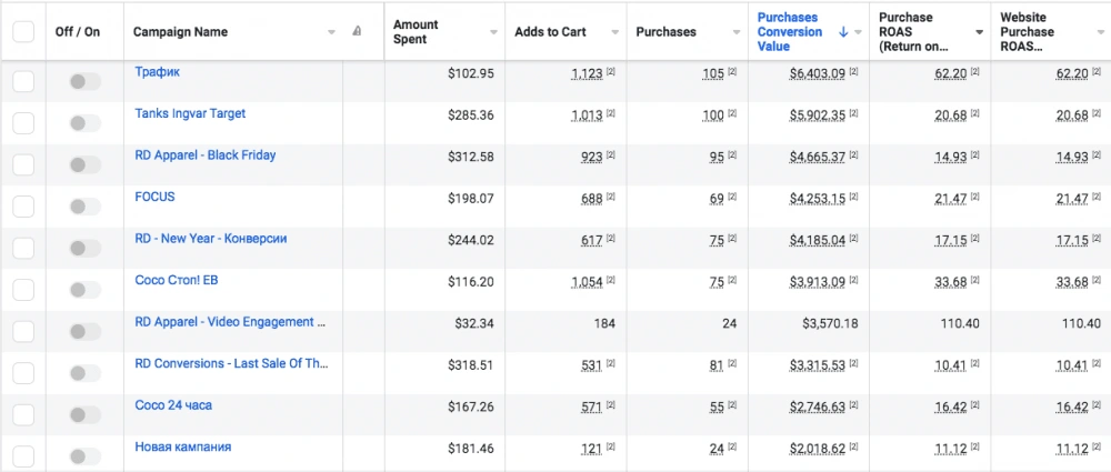 So, first of all, we created an audience based on people who engaged with the Instagram profiles. After installing pixel on a website, running first ads, and getting purchases. We started testing out Lookalike audiences, abandoned cart audience, page visitors, etc.
