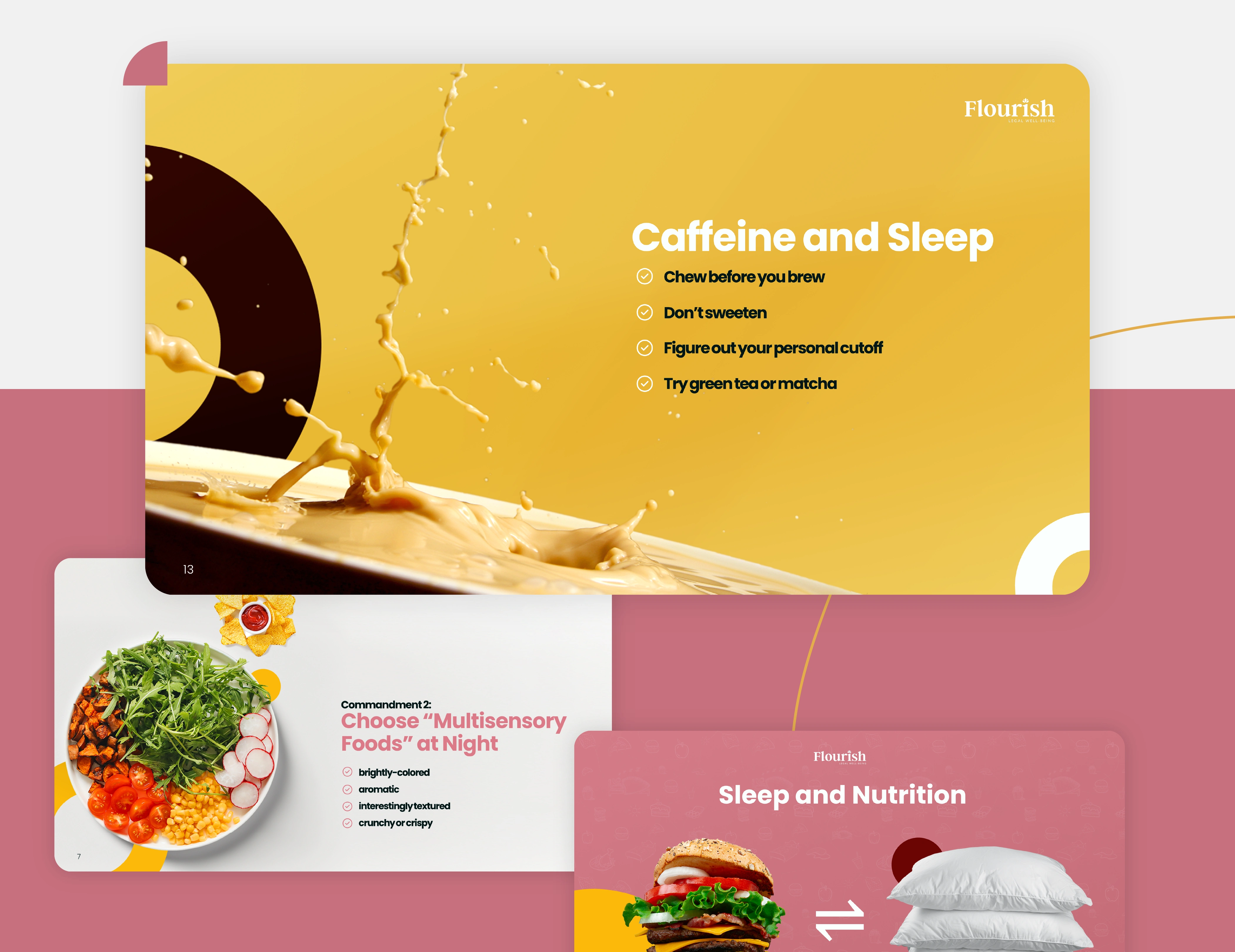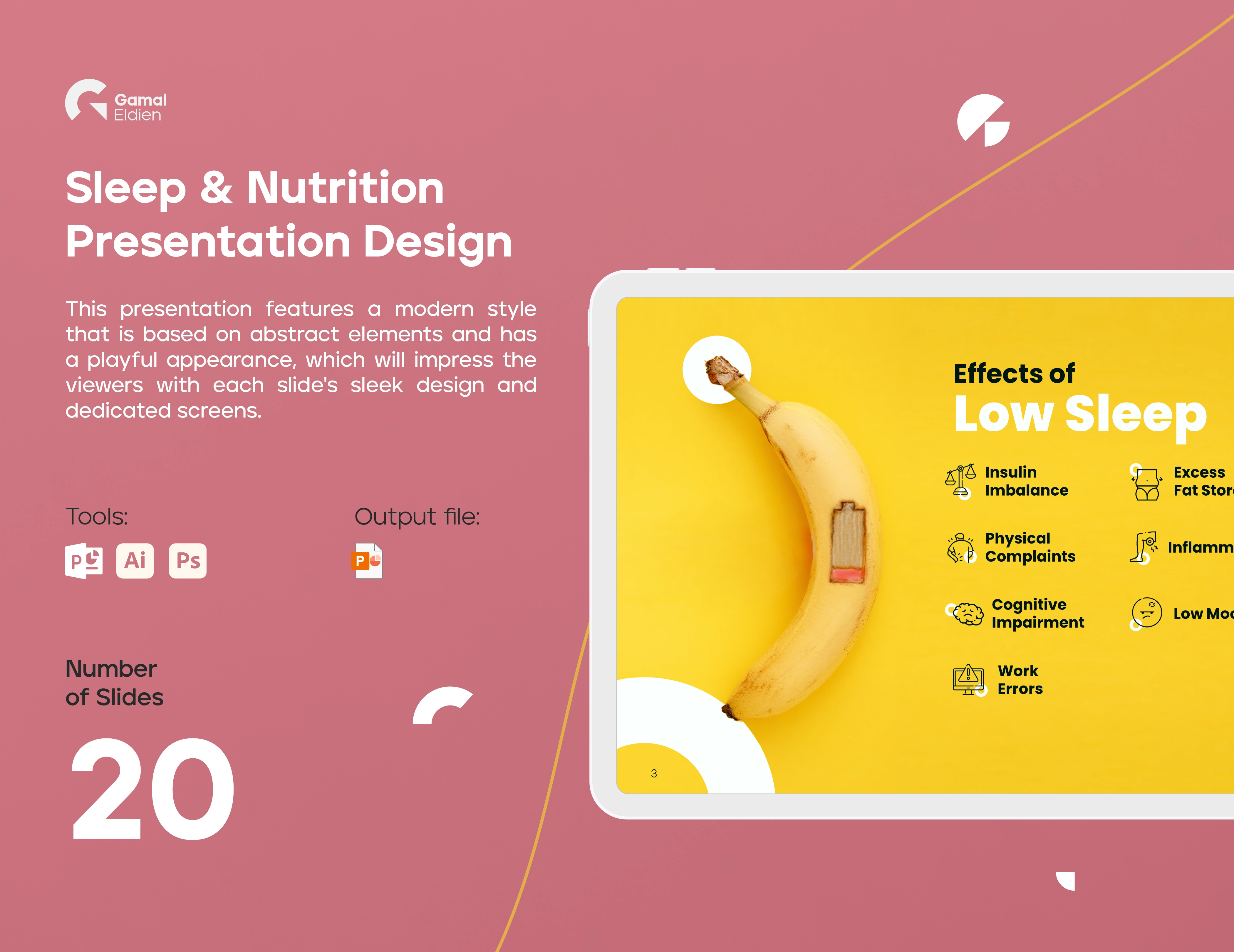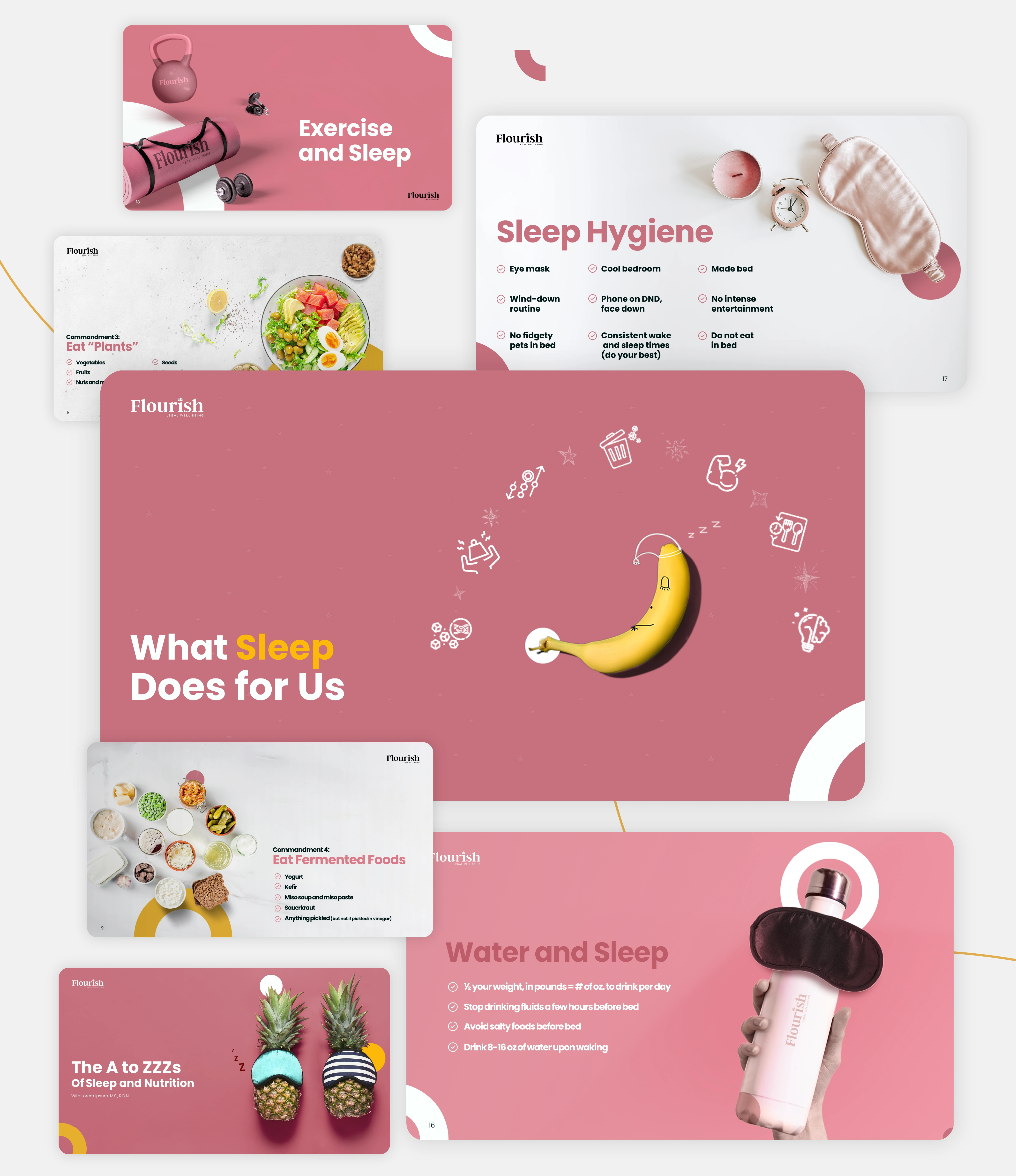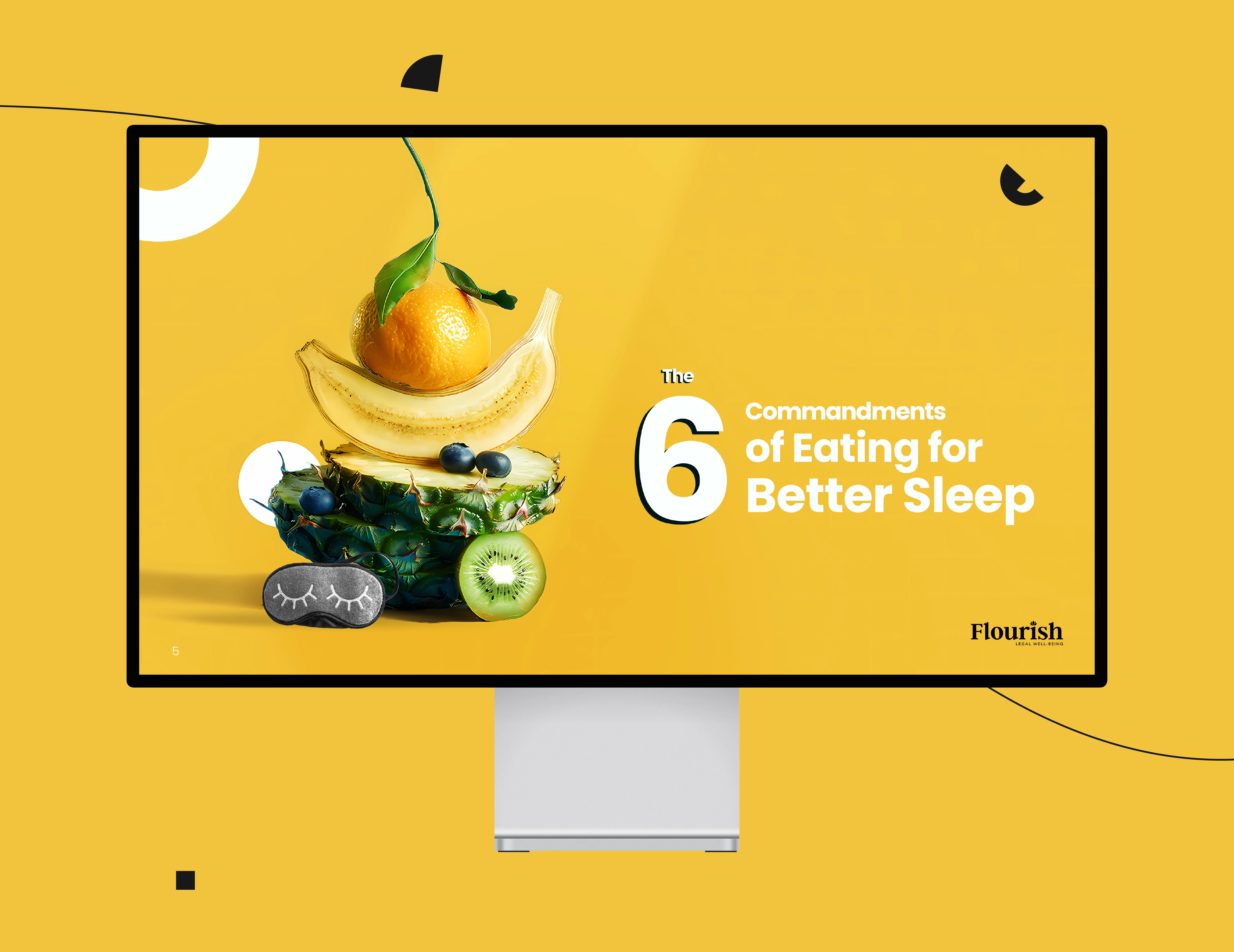 Modern Sleep & Nutrition presentation with playful abstract elements and sleek design. Dedicated screens impress viewers with a stylish, engaging approach.