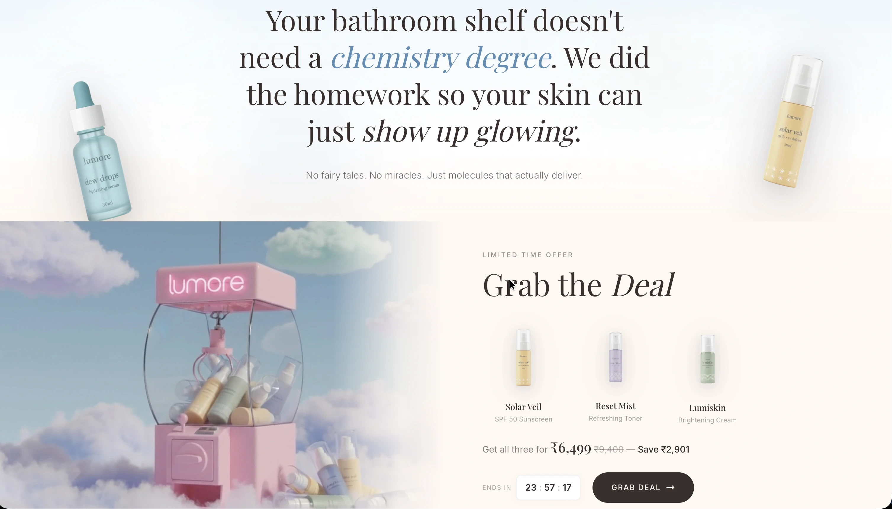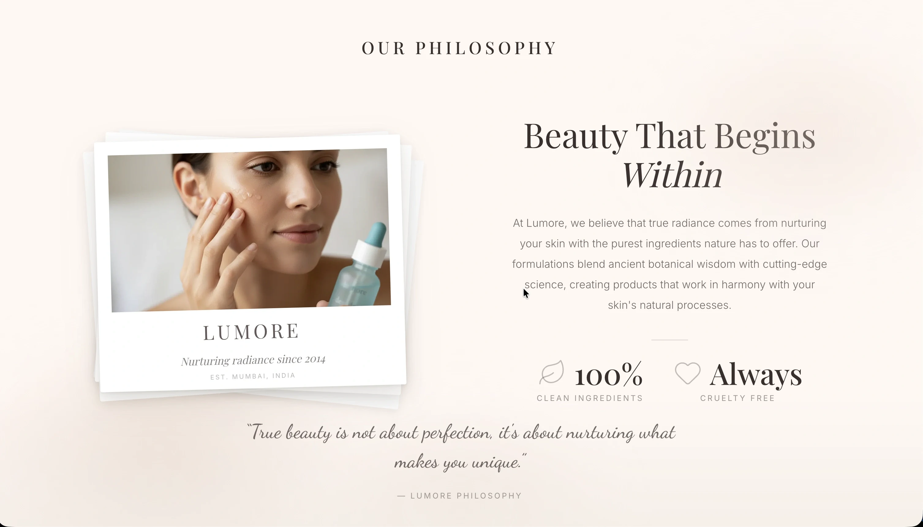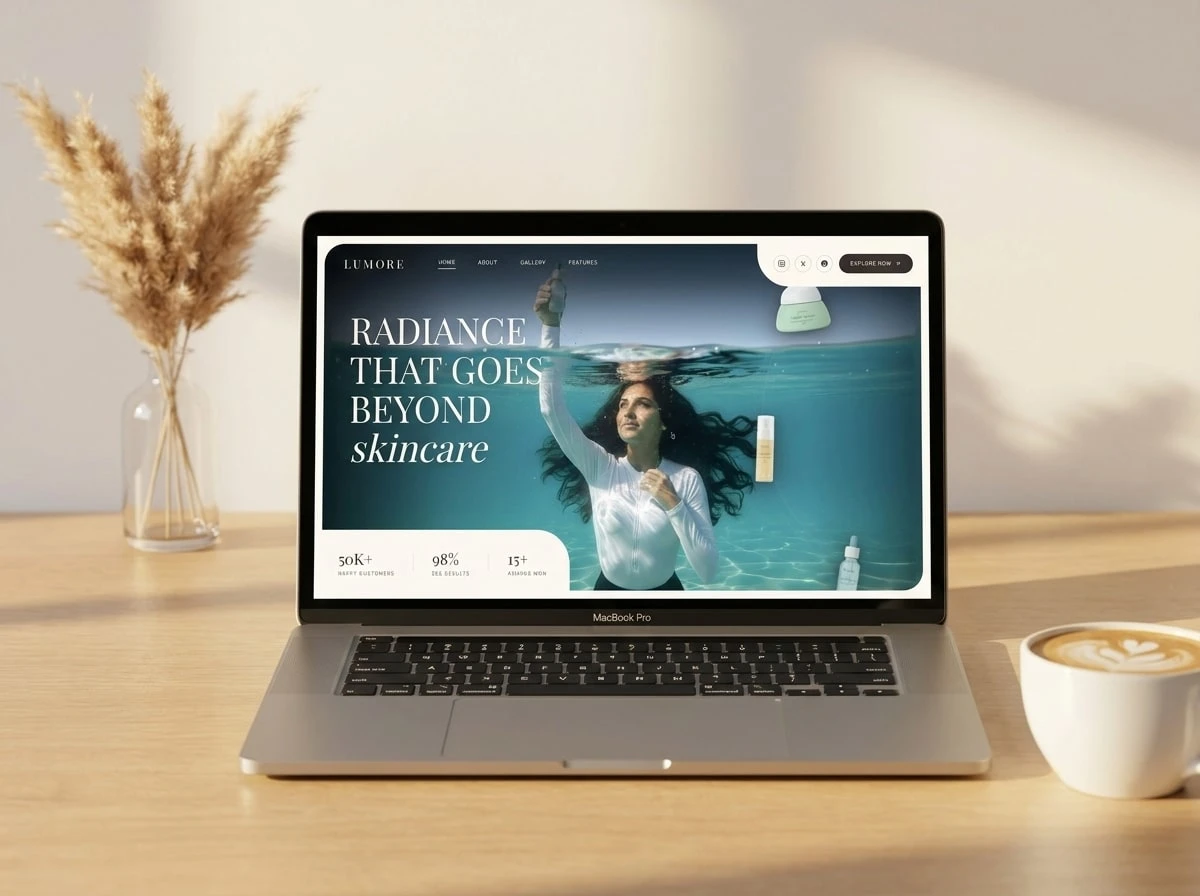 A complete 13-section cosmetic brand landing page built in 24 hours using only AI tools for design, copy, imagery, and video. Zero stock assets. Zero Figma. Zero Photoshop.