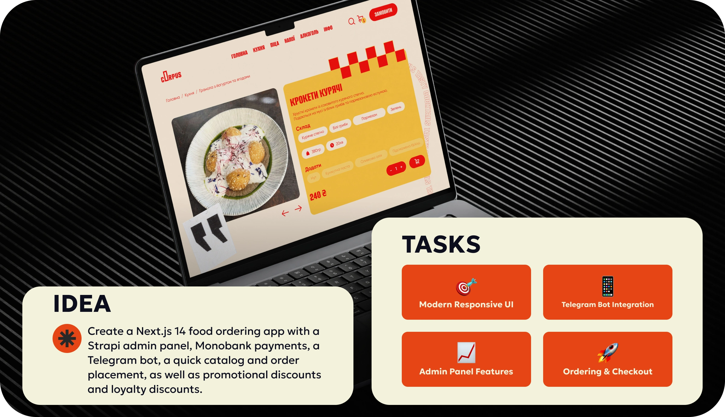 🚀 I developed a modern SaaS ordering platform for restaurants and their customers, featuring a sleek catalog, fast checkout, and instant notifications. The solution reduced order processing time by 40% and improved checkout success rate by 35%