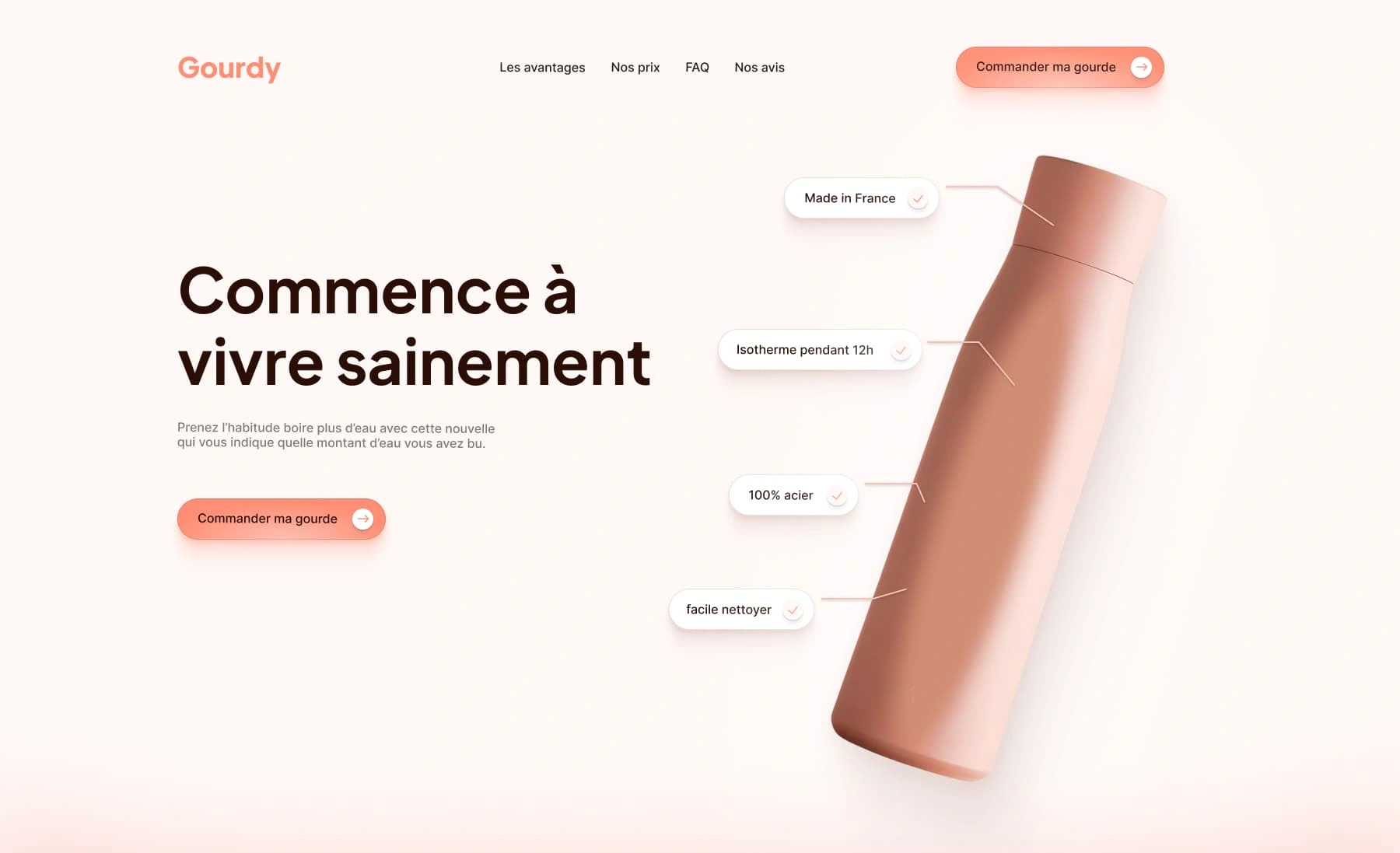 I redesigned the landing page for a premium water bottle brand, focusing on a sleek, modern, and conversion-optimized design.