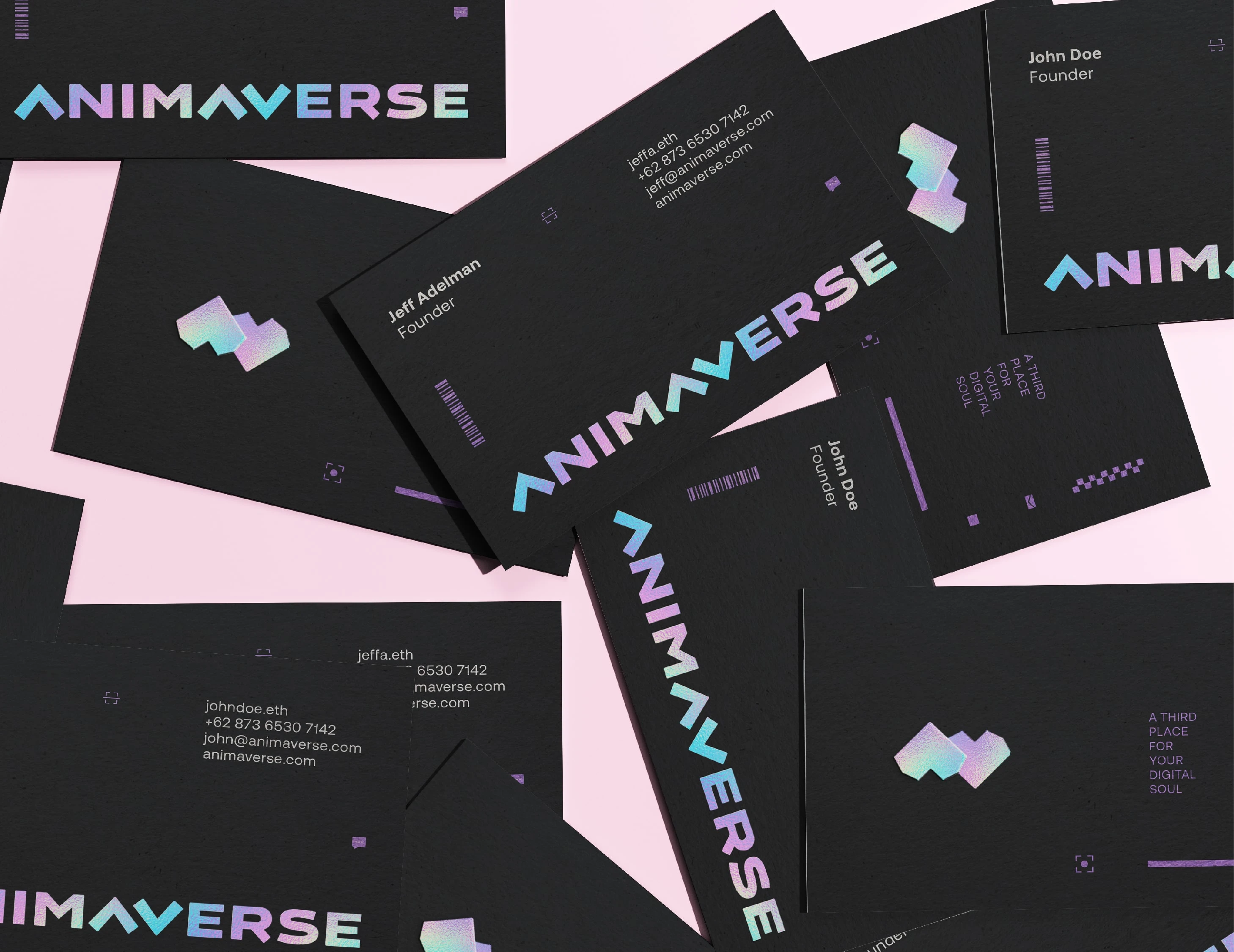We created several key visuals, representing the world of Animaverse. All the graphic elements related to technology, social media, and low-poly structure. Some of the low-poly structures were made with wave shape as we want to represent the soul of people inside of Animaverse.