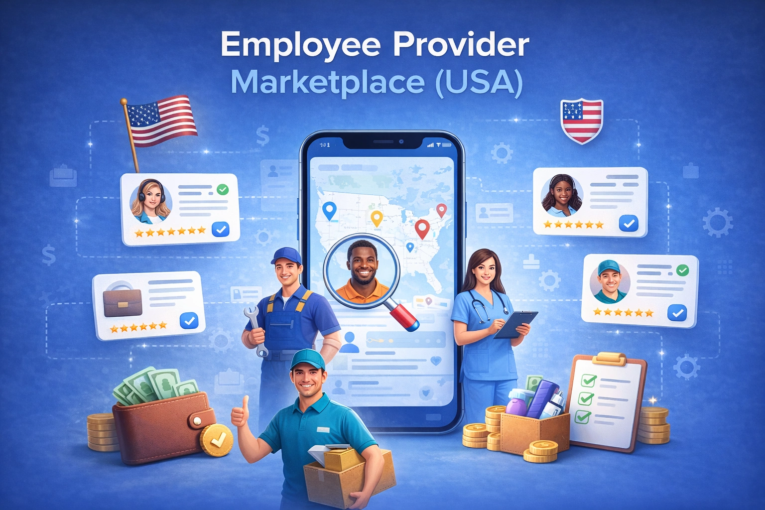 A two-sided mobile marketplace connecting job providers and workers, featuring real-time job posting and bidding workflows.