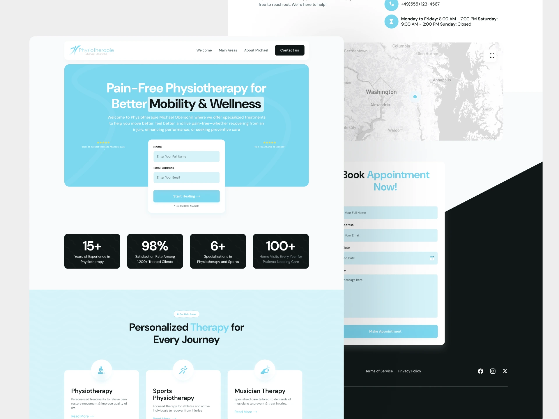 This project focuses on designing a modern homepage for a sports physiotherapy practice that treats active individuals, athletes, and patients seeking long-term physical recovery. The goal was to present physiotherapy as both medically credible and performance-driven, helping visitors quickly understand services, treatment philosophy, and outcomes while feeling confident booking their first session.
