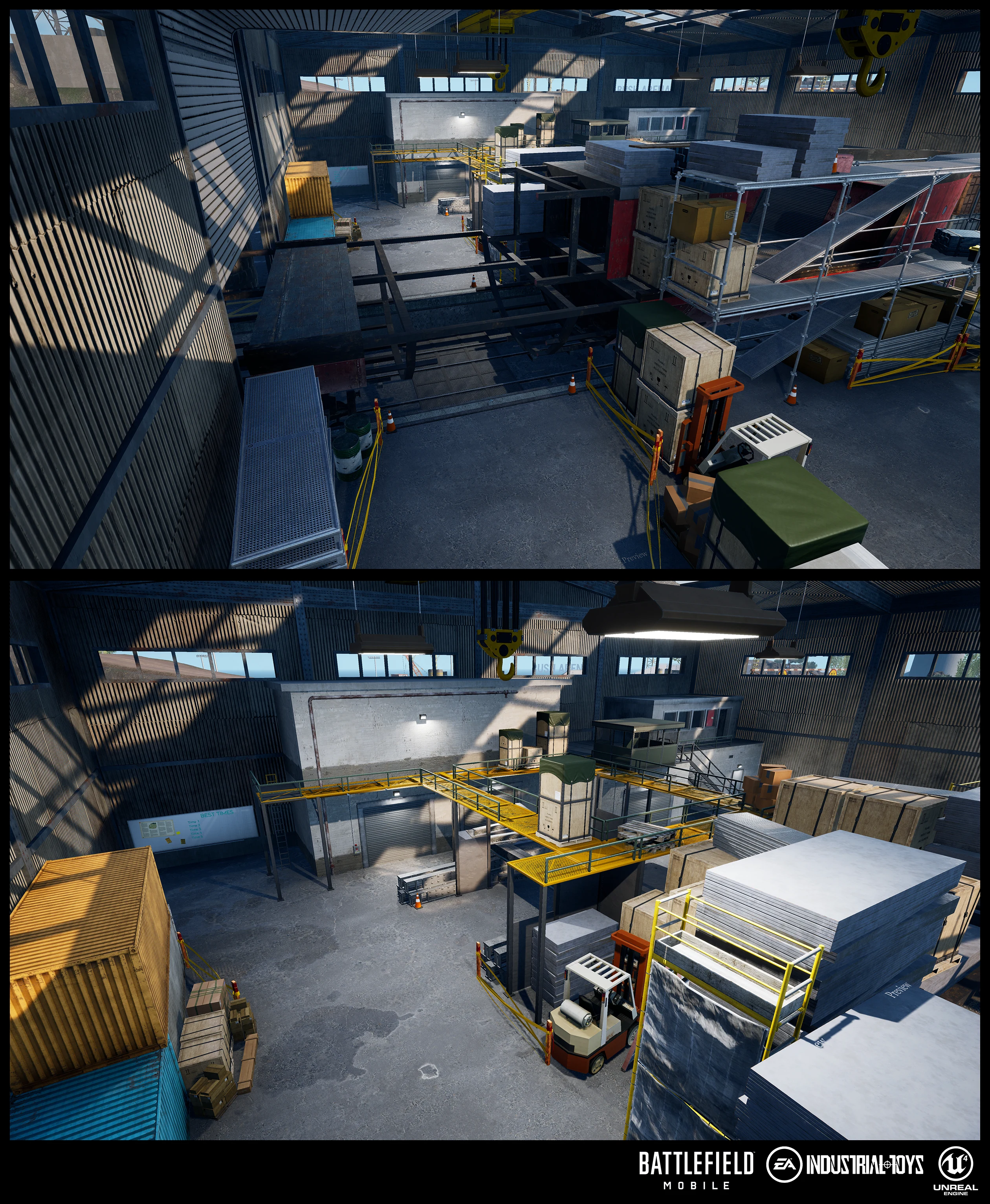 Game Environment layout, content creation, modular assets creation, textures and materials creation, and level optimization for Battlefield Mobile.