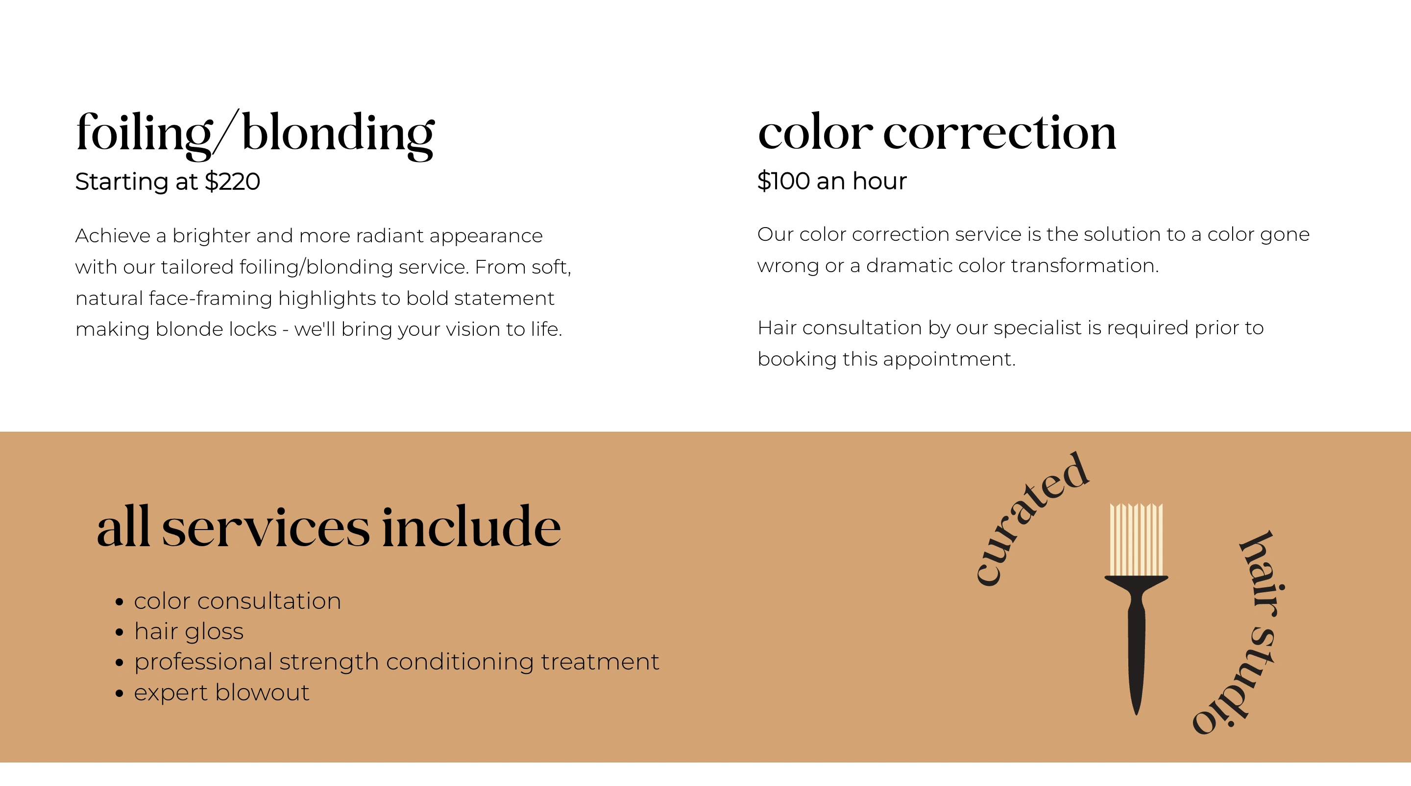 A custom Wix Studio site for a hair coloring studio, featuring a service showcase, responsive design, and contact/intake form for a seamless client experience.