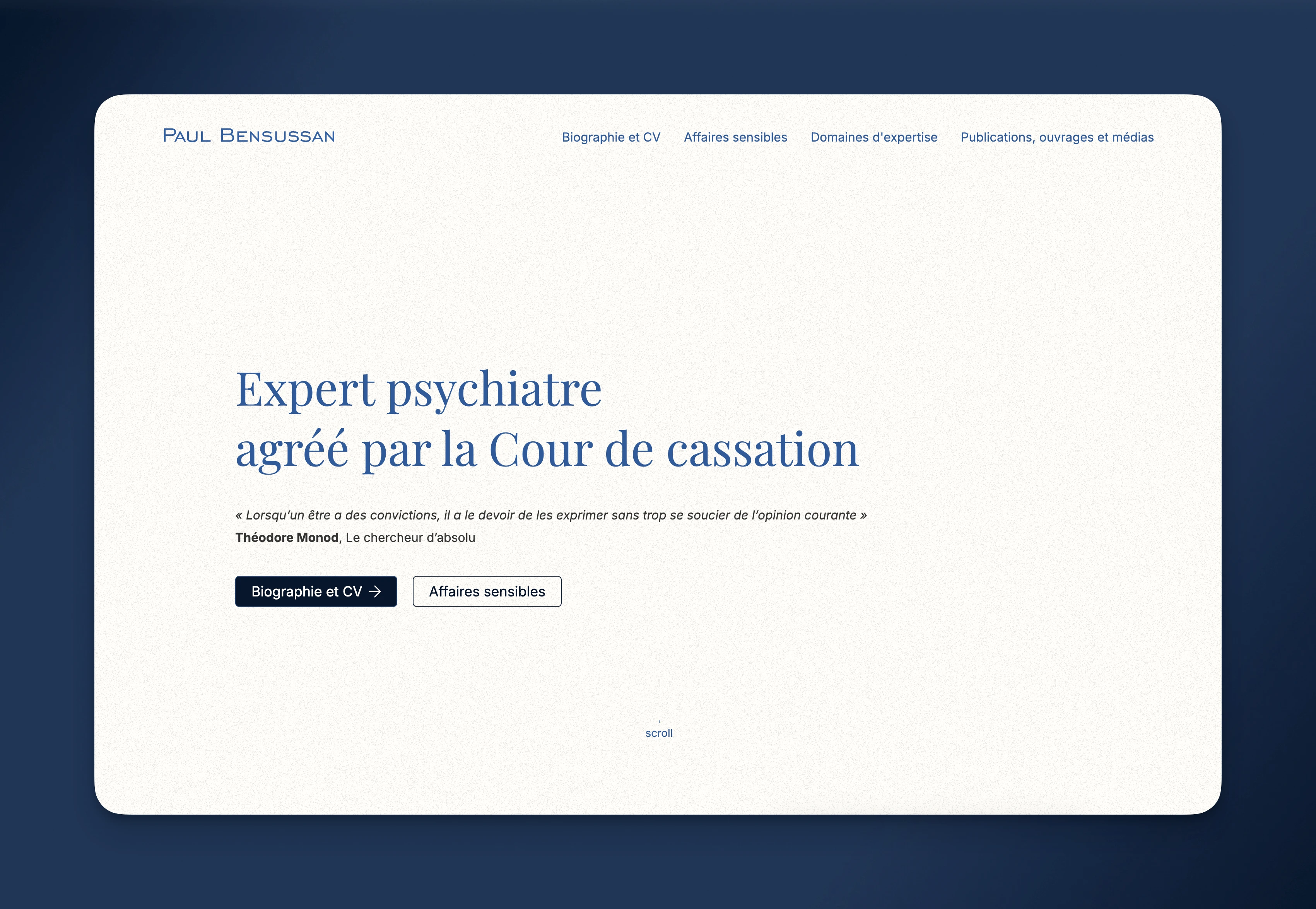 Showcase site for psychiatrist and expert Paul Bensussan — a clean, professional Webflow build to reflect his work and publications.