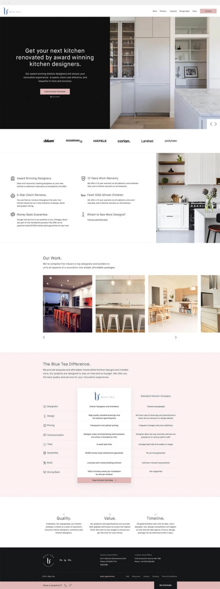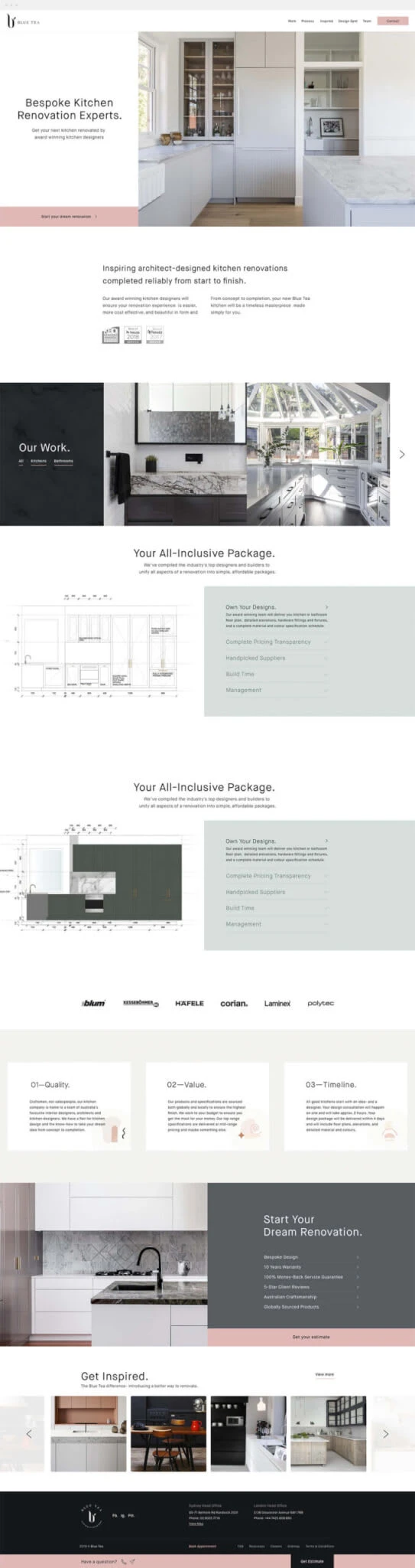 Blue Tea design and build custom kitchens in Sydney, Melbourne and Brisbane, using interior designers- not sales people.