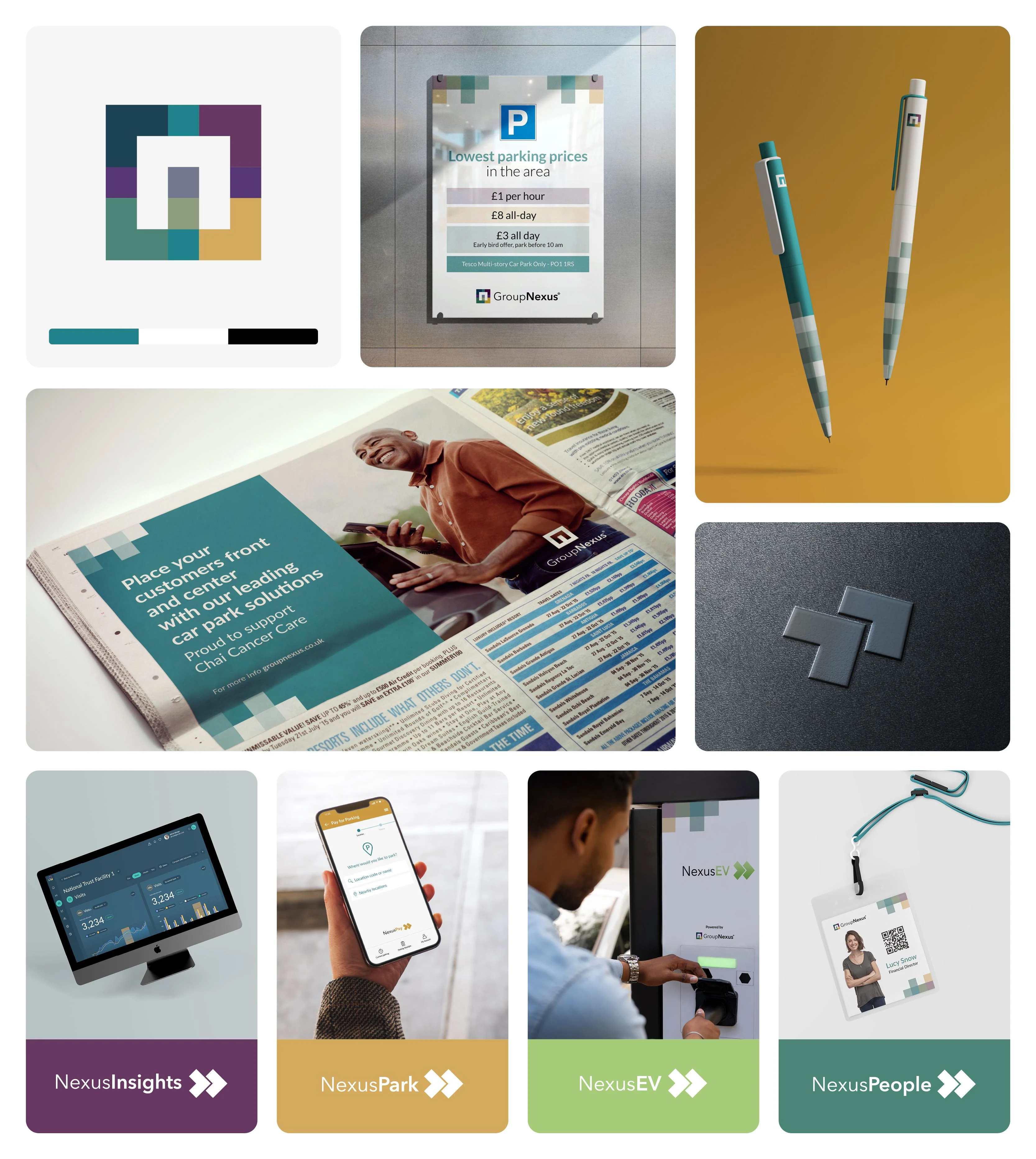 GroupNexus, a leader in parking solutions, combines the best people, products and decades of experience to deliver innovative, market-leading services. As the company evolved, they needed a brand identity reflecting their mission to shape the future of parking through cutting-edge technology and meaningful customer connections.