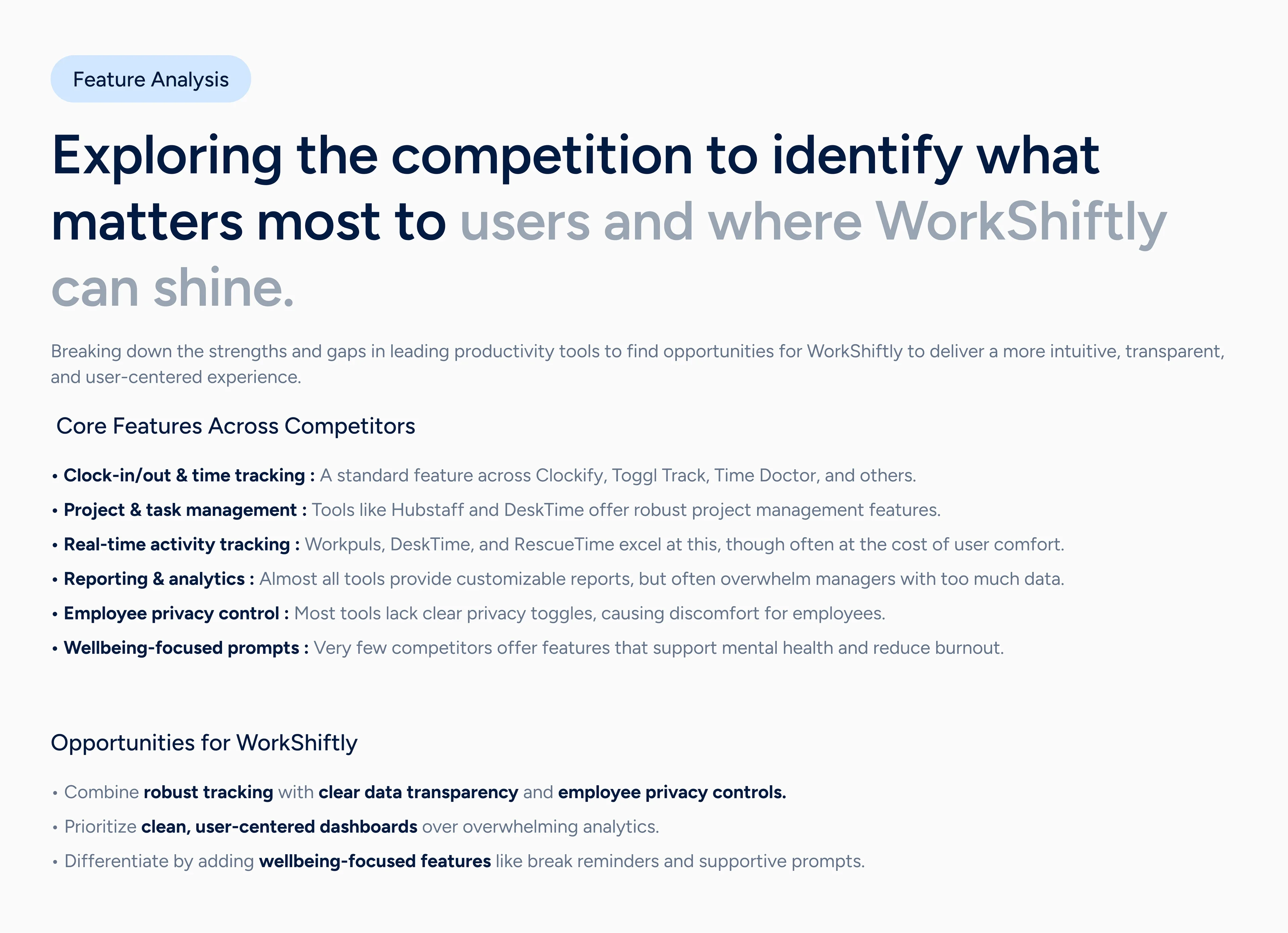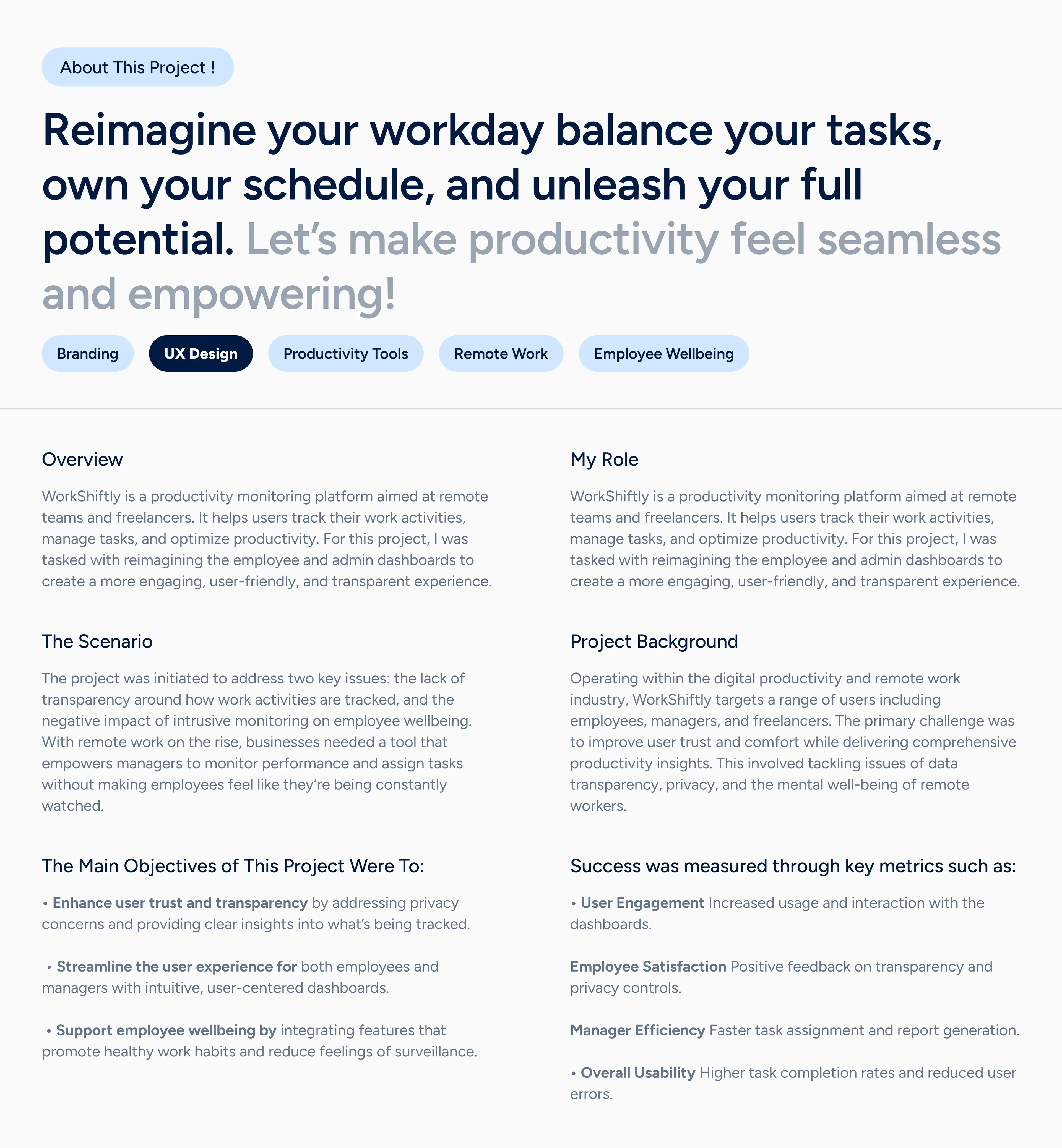 Workshiftly is a workforce management SaaS platform designed to simplify time tracking, productivity monitoring, and team coordination.