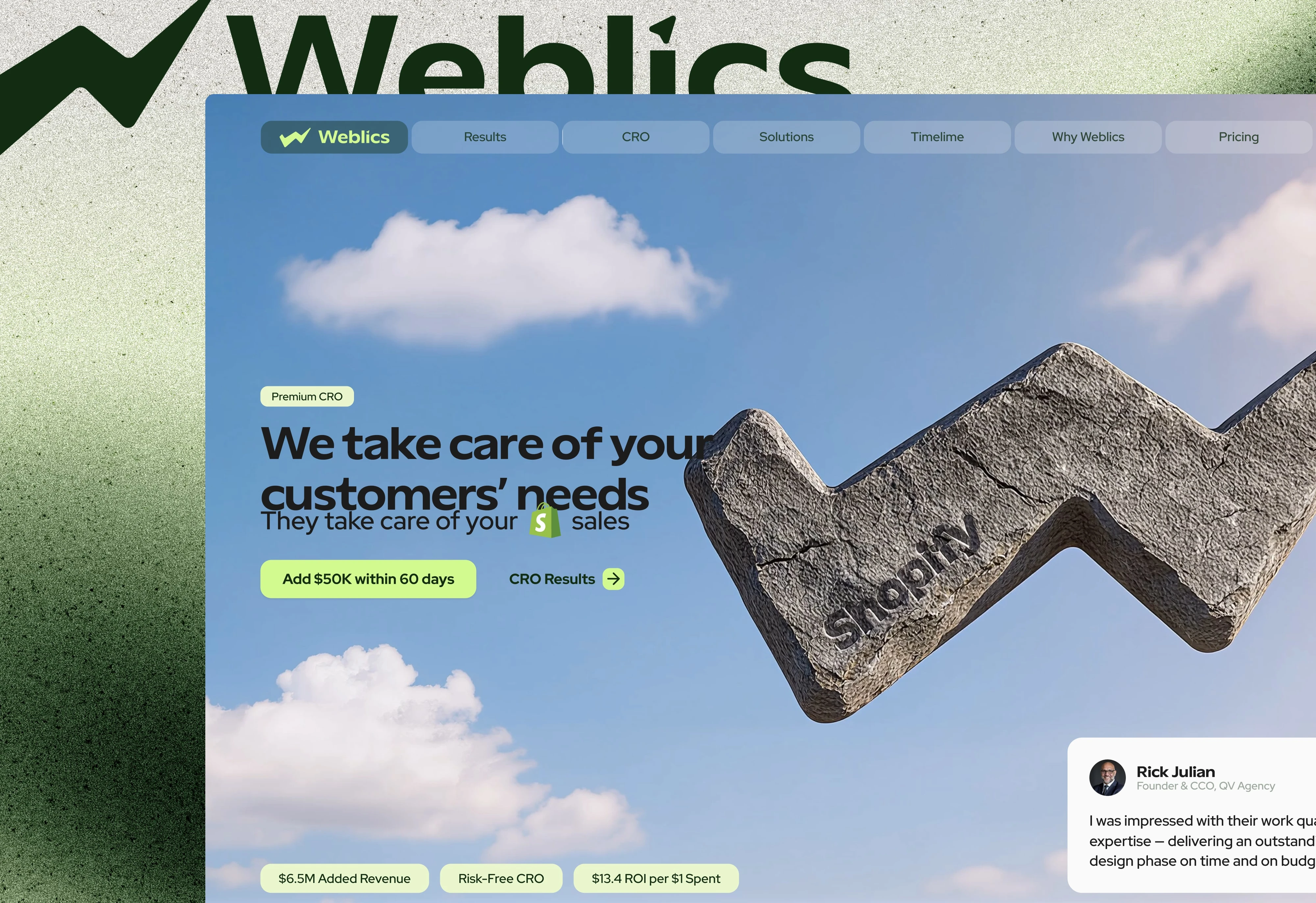 For this project, as a Webflow Developer, responsible for building a high-performance B2B marketing website in Webflow for a Shopify-focused CRO agency.