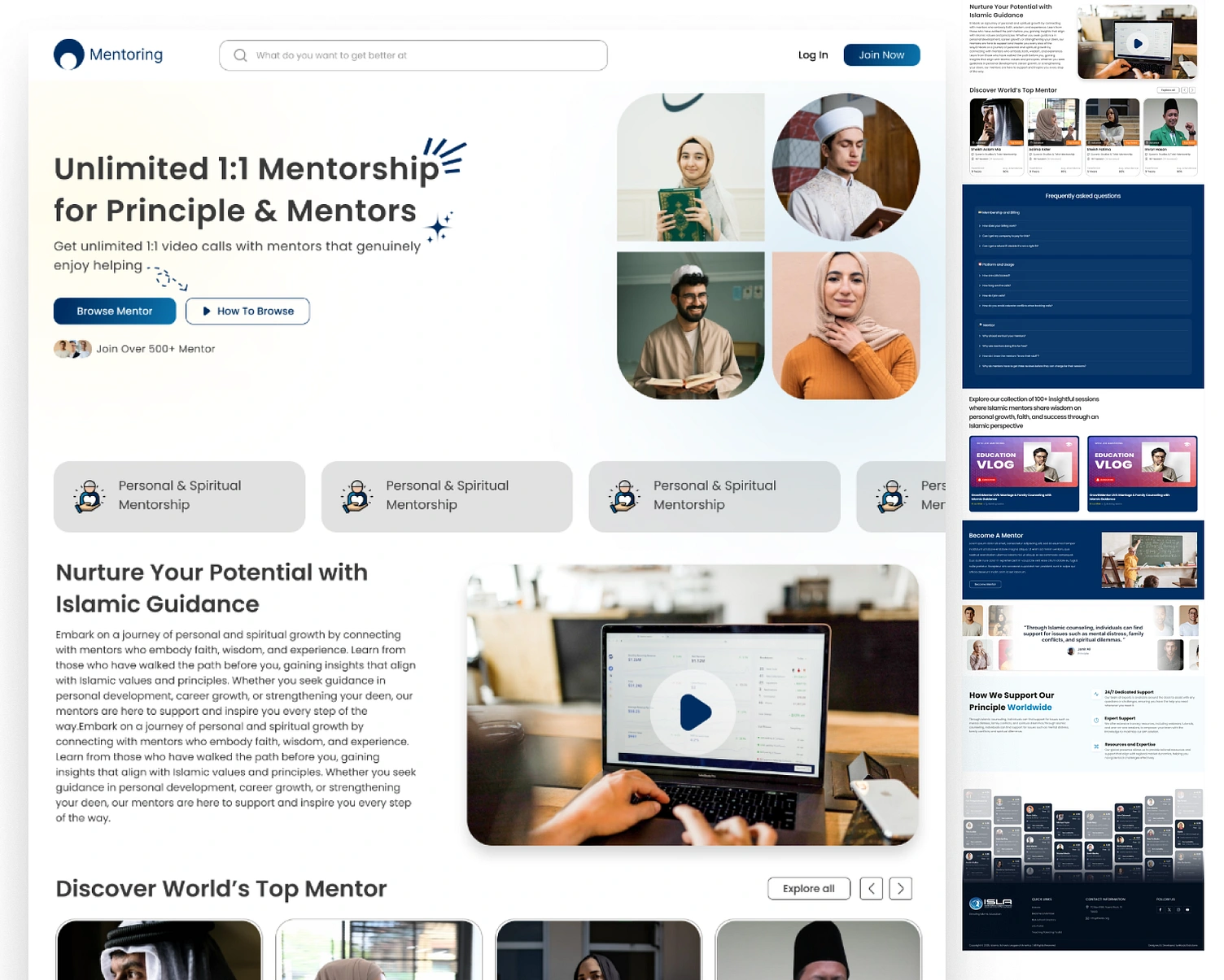 Designed to facilitate seamless connections between students and mentors, this landing page features a clean, modern UI/UX. The layout is optimized for ease of use, with an intuitive signup flow, strategic CTAs, and an engaging hero section. The design focuses on clarity and professionalism, using minimalistic typography, vibrant accents, and responsive elements to enhance user experience. Perfect for mentorship platforms, this design ensures high user engagement and smooth interaction.