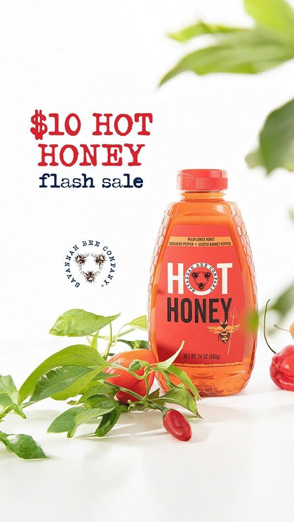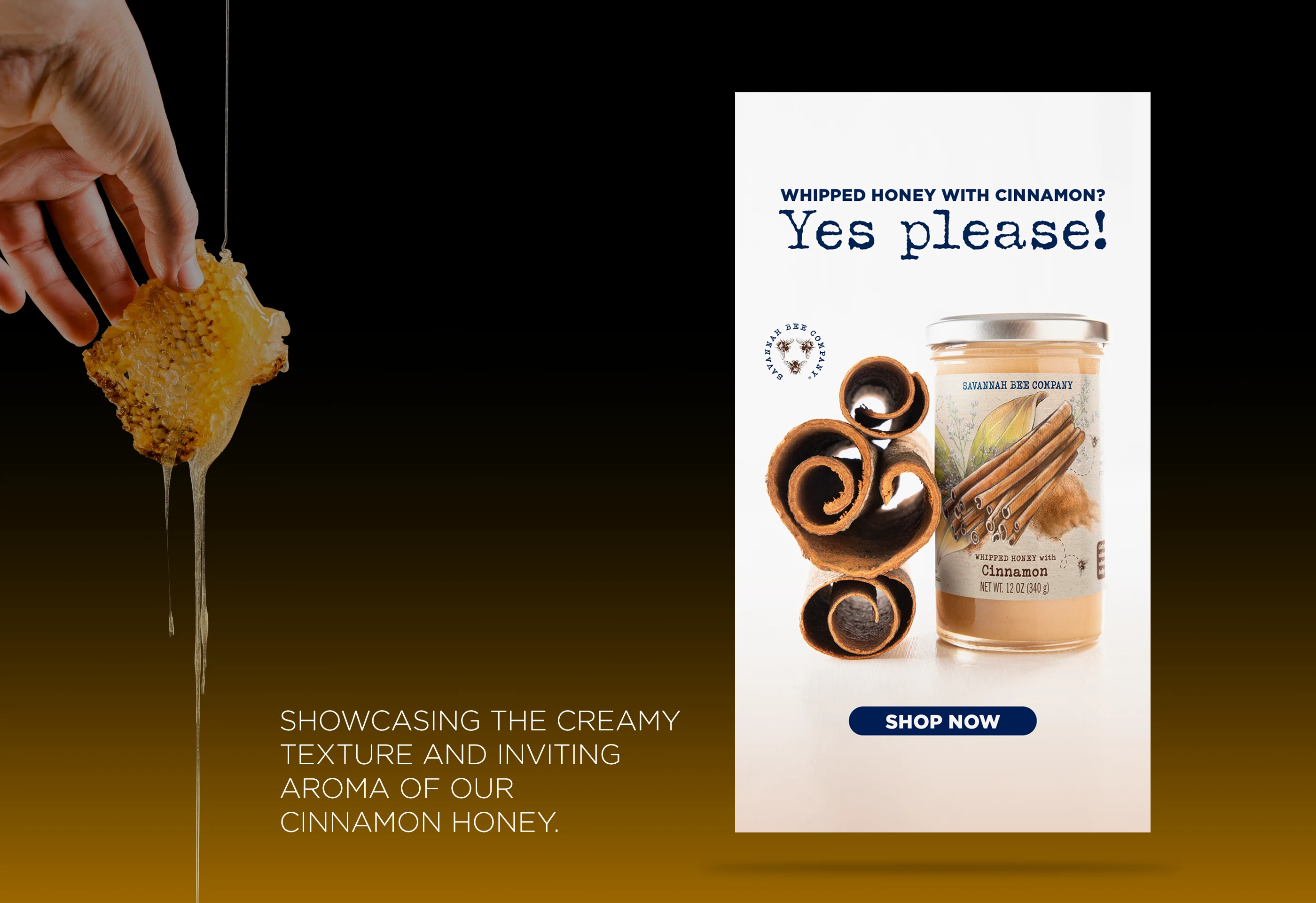 This project showcases a collection of social media ad creatives designed to elevate brand awareness and drive direct sales for Savannah Bee Company's exquisite range of honey-based products, including their popular Hot Honey and Whipped Honey with Cinnamon.