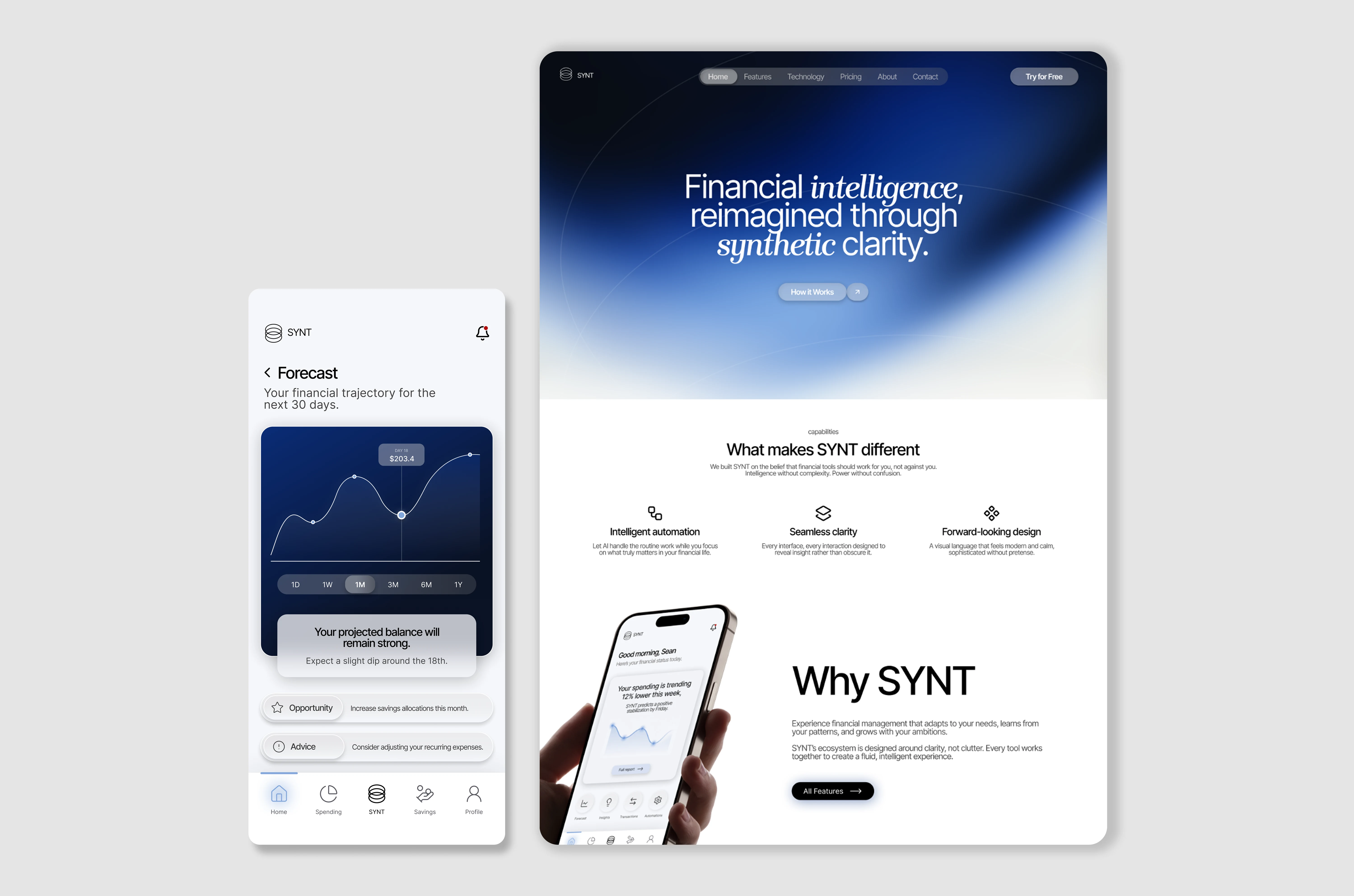The UX approach centered on reducing cognitive load and presenting financial insights in a way that feels natural instead of analytical. On the UI side, I developed a visual language defined by balanced white space, soft depth, and fluid interface elements that reinforce the sense of clarity. The challenge was maintaining a futuristic aesthetic while keeping the interface accessible, readable, and visually calm. Through continuous refinement, the result became a design system that feels advanced but never intimidating, smooth, confident, and easy to navigate