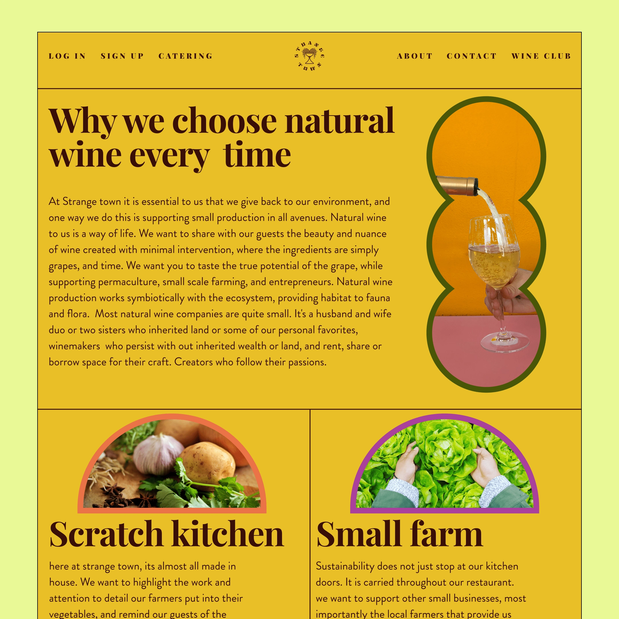 Strange Town had some logos, but none of the elements were cohesive to their plant-based wine bar vision. I developed an overflowing chalice mark representing t
