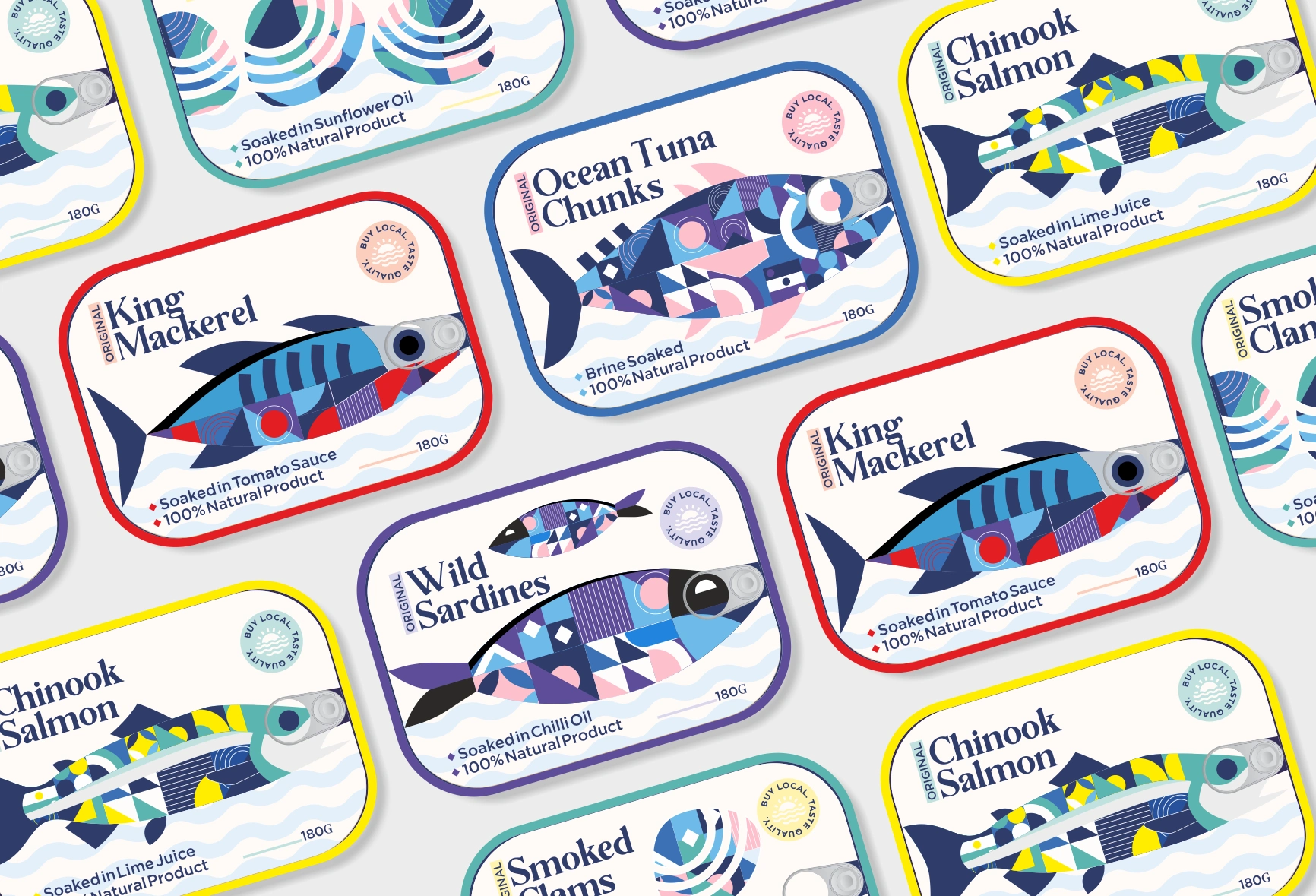Supporting local fisheries with premium branding, using minimal yet striking visuals.