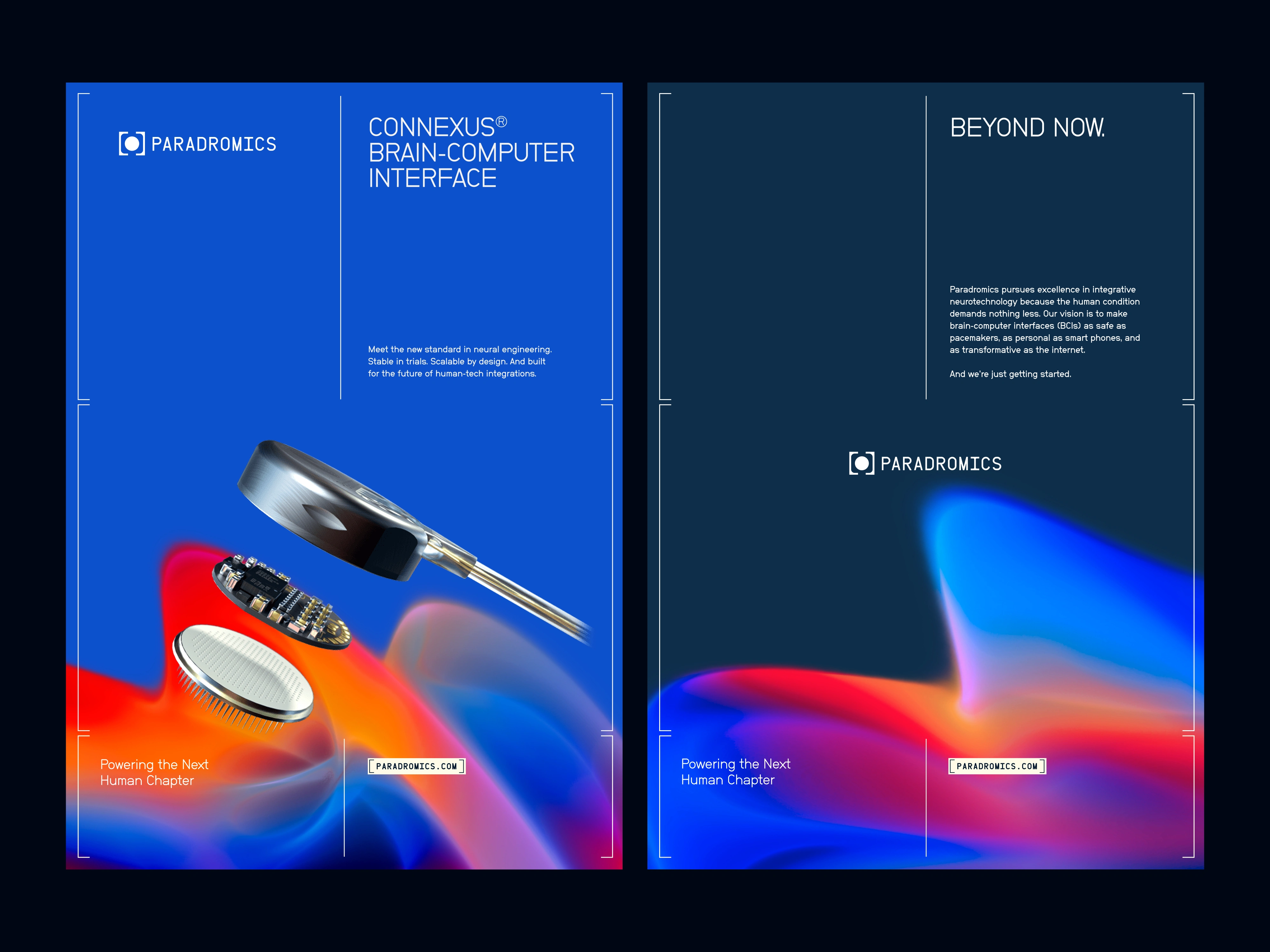For Paradromics, I developed a brand mark rooted directly in the company’s core function: capturing and recording brain signals. The circle represents the neuron — humanity — while the square frame suggests the technological interface, expressing a deliberate balance between organic life and engineered precision, and Paradromics’ ambition to remove the barriers between thought and reality.