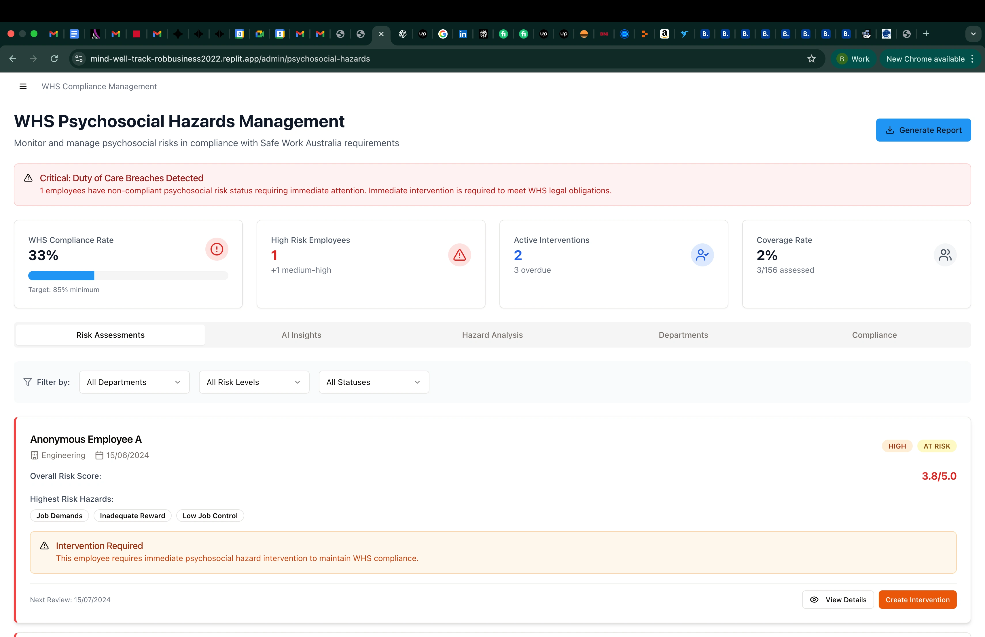 Designed a tool for HR compliance with Australian Psychosocial metrics.