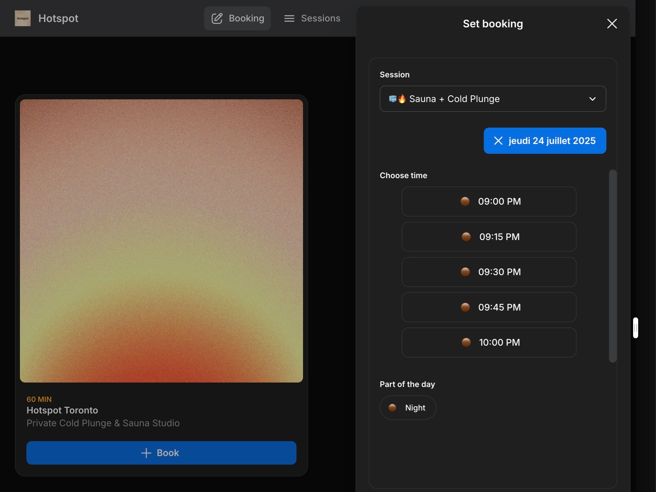 Booking app using Stripe and real time updated Calendar to book hot spot session. Integrated Subscription with Stripe