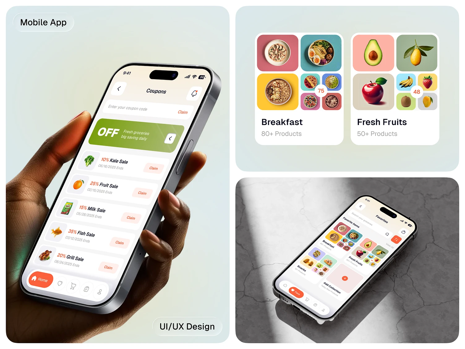 š Favorites Page ⢠Grid or list view of saved items for quick access ⢠āBack in stockā and āPrice dropā alerts ⢠Easy add-to-cart or āAdd all to listā options ⢠Sort by recently added, most ordered, or brand ⢠Grouping by category (e.g., Fruits, Snacks, Dairy) for easier browsing ⢠Synced across devices and usable in auto-reorder settings