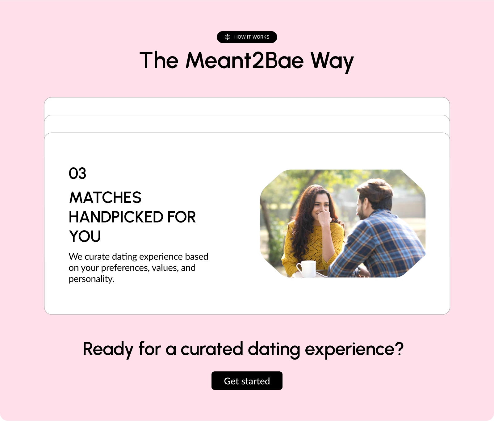 Created a fun and engaging landing page to drive signups that captures Meant2Bae's unique approach to dating, built in Framer.