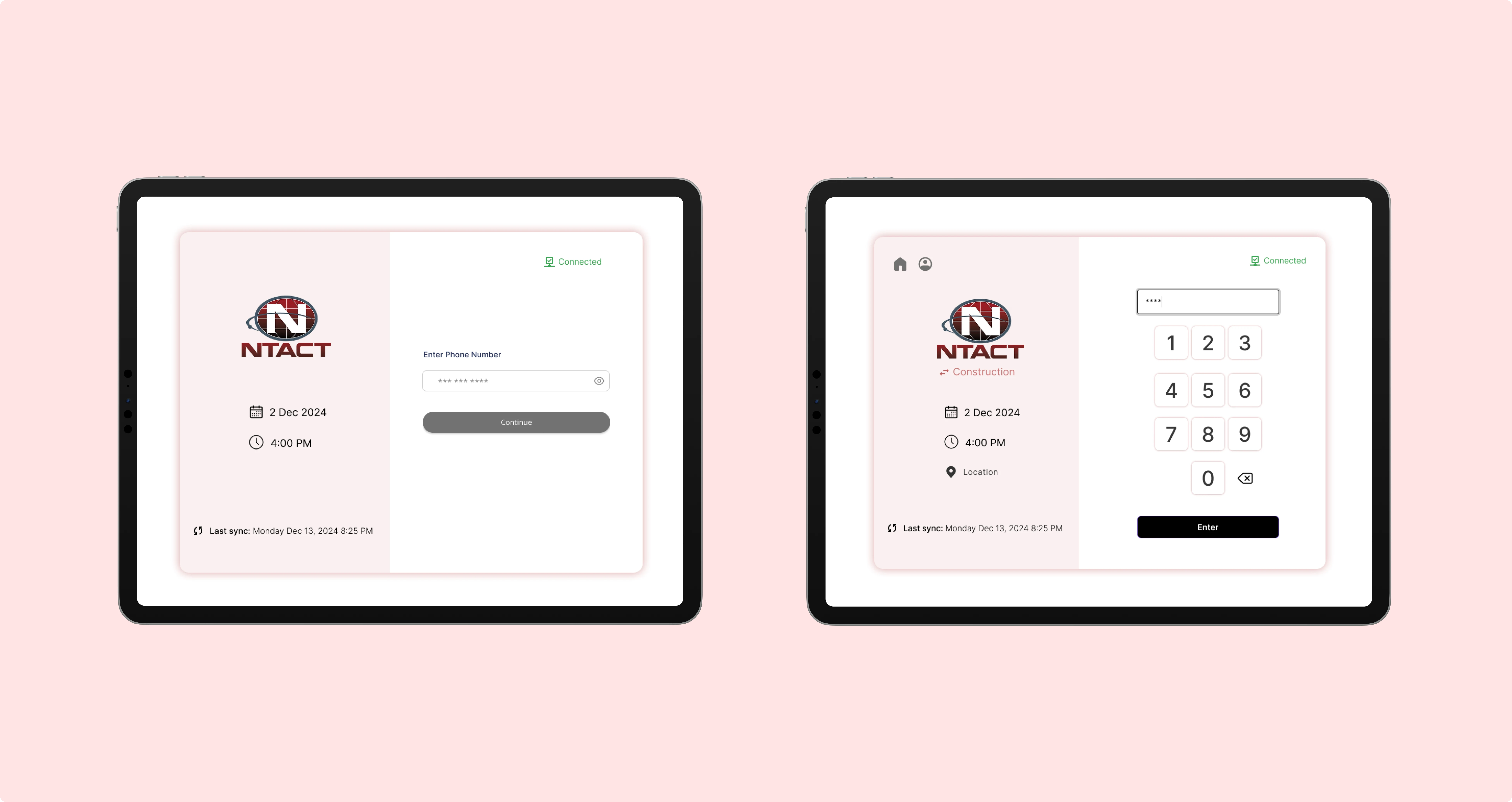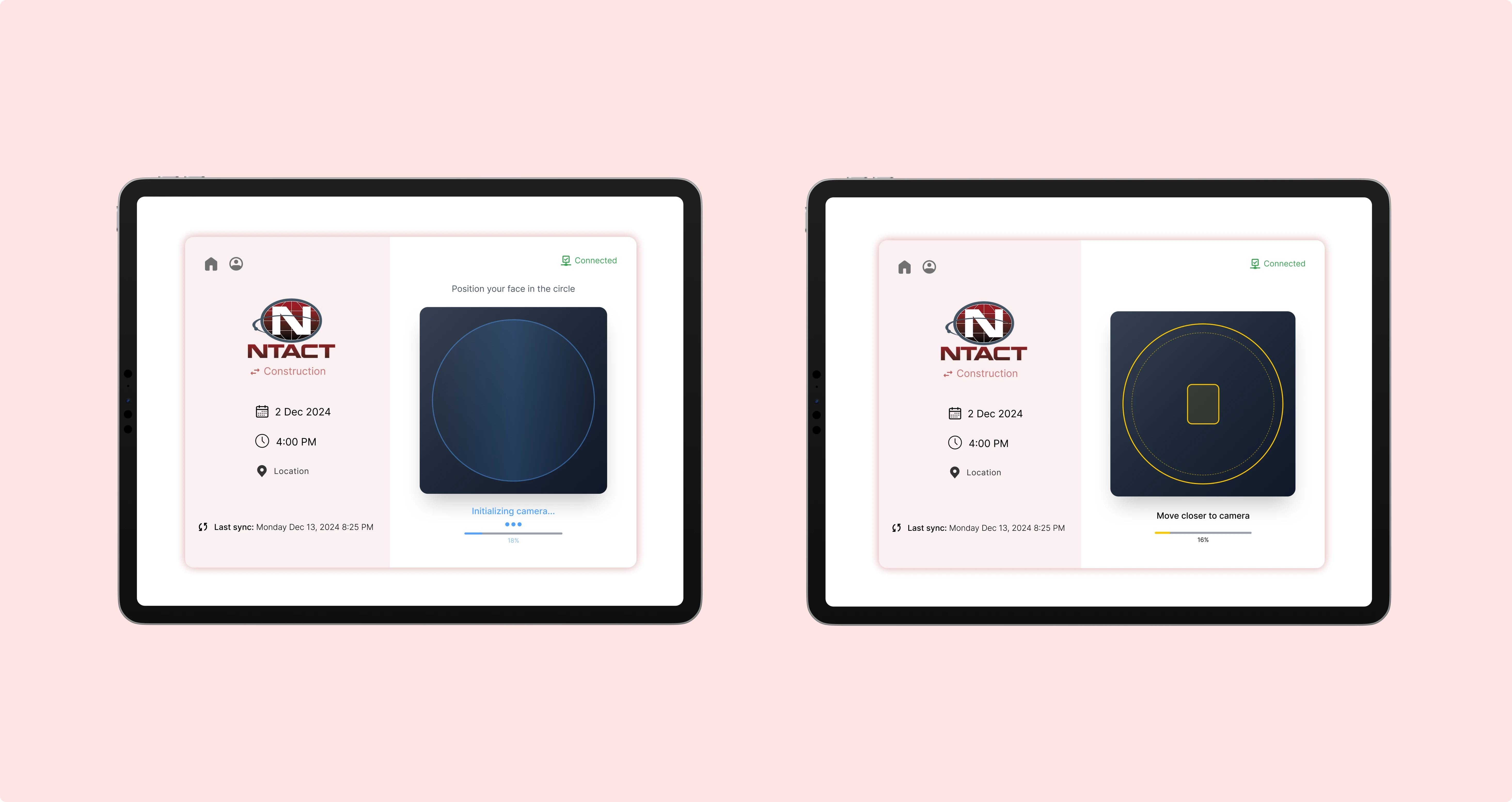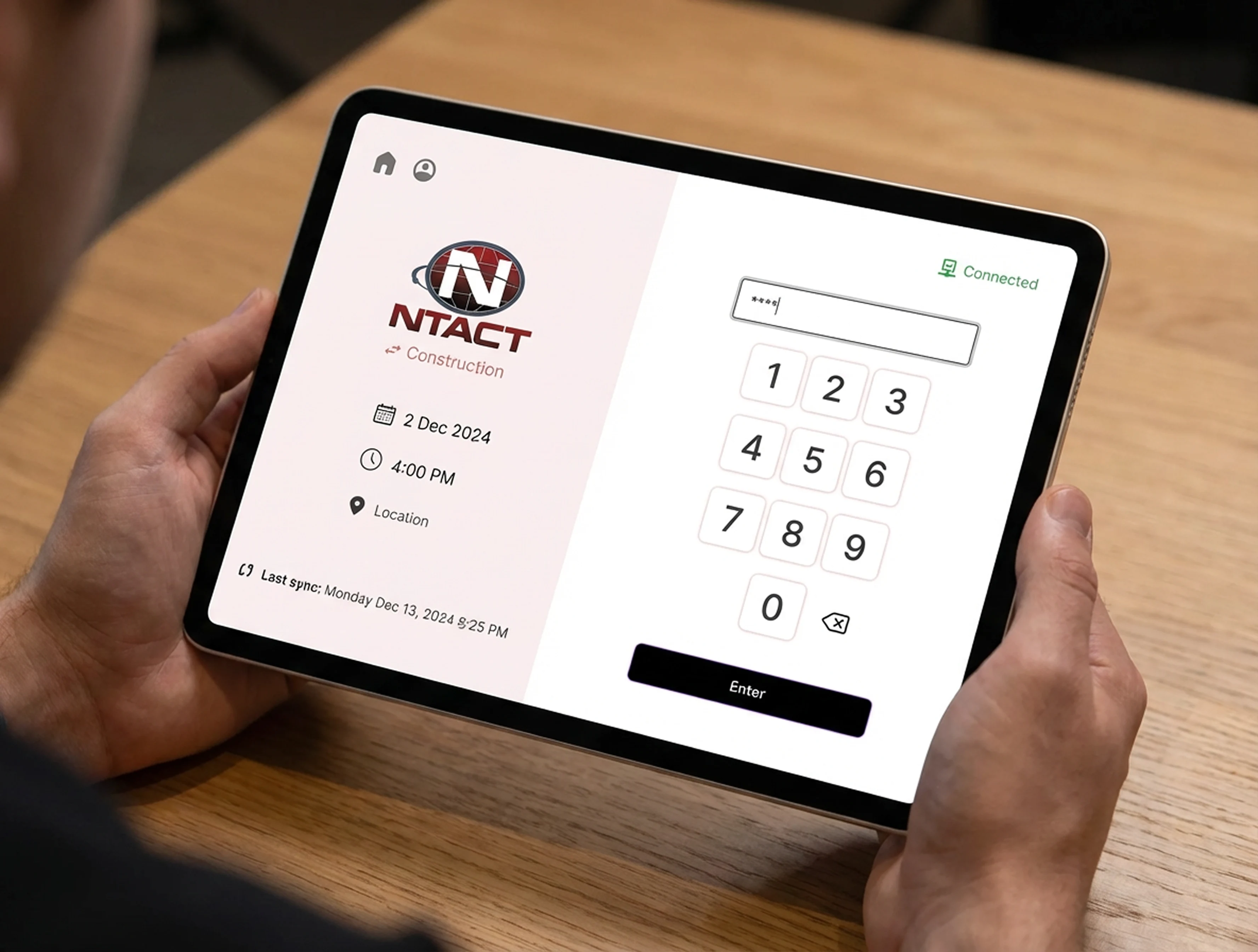 NTACT Operations sought to modernize their on-site time tracking. Moving away from an inefficient pen-and-paper reliance, we developed a robust, iPad-based Clock-In/Clock-Out system. The solution streamlines workforce management for supervisors, integrates mandatory safety checks, and is currently evolving to include advanced facial recognition technology.