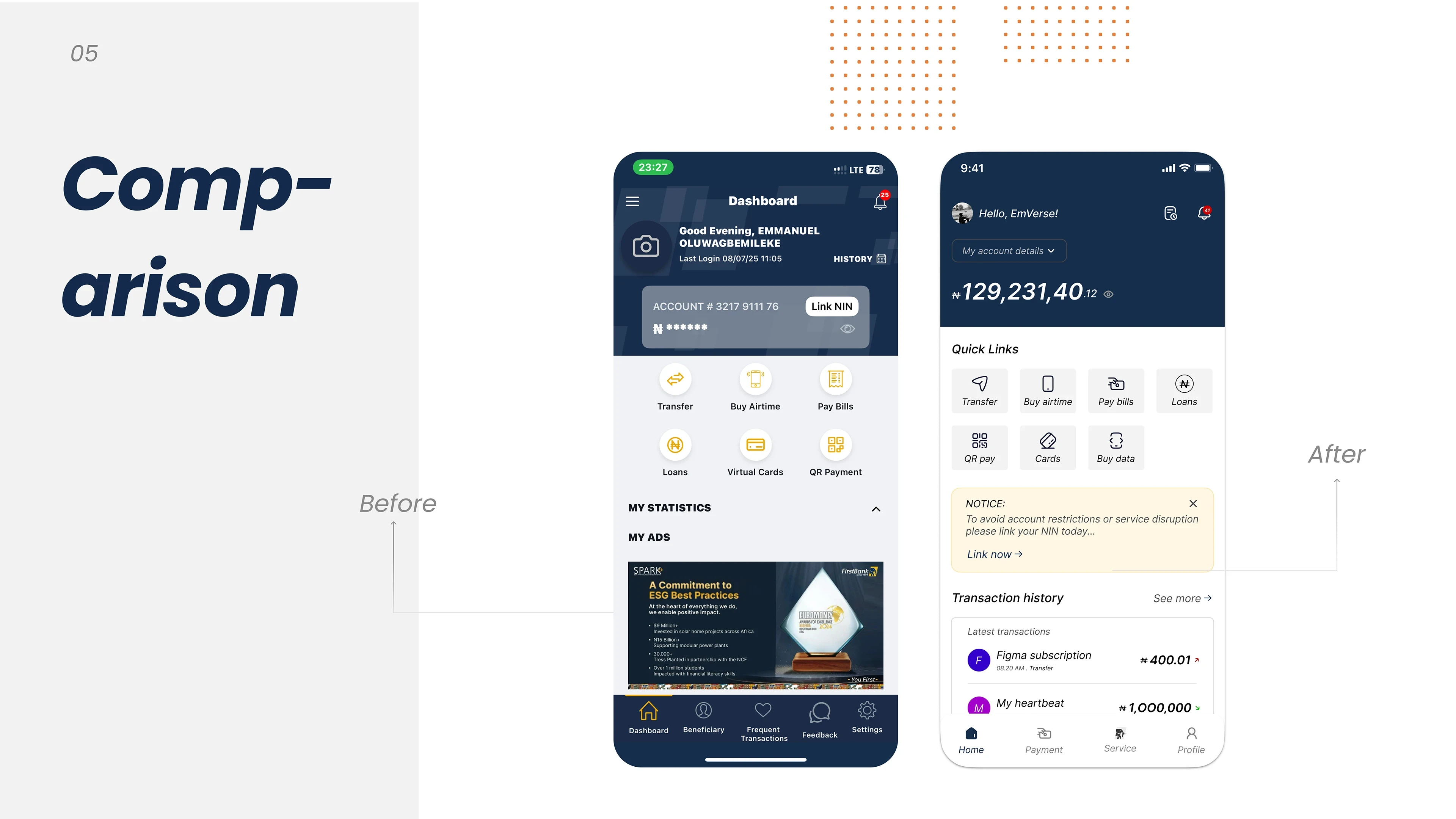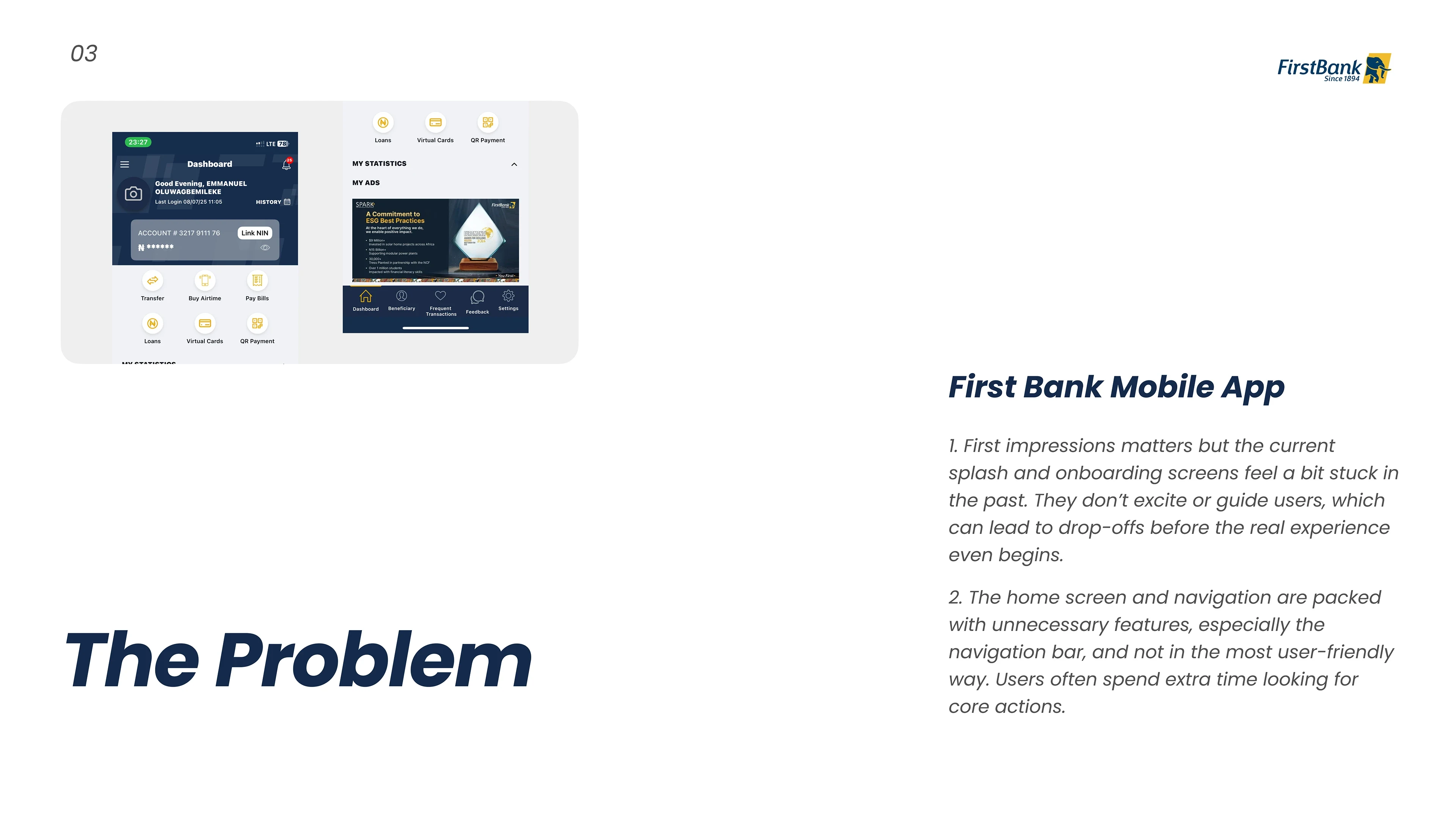 Redesigned First Bank’s mobile UI for a modern, intuitive, and user-friendly experience. Focused on clarity, trust, and seamless financial interactions.