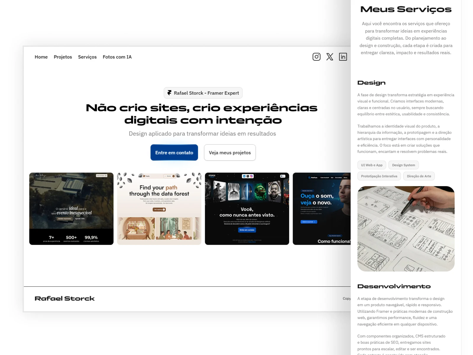 I designed and developed my personal portfolio to showcase my work as a Product Designer and Framer Developer. The site highlights my experience, services, and creative approach, combining performance, clarity, and strong visual identity in a single-page layout.
