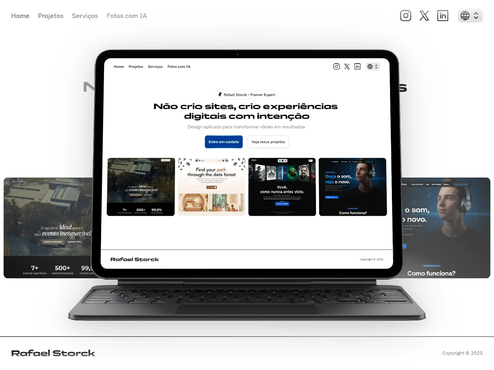 Built entirely in Framer, the layout uses a dark theme with vibrant blue accents, modern typography, and modular sections. From project showcases to booking integration, everything was designed to be fast, responsive, and easy to navigate.