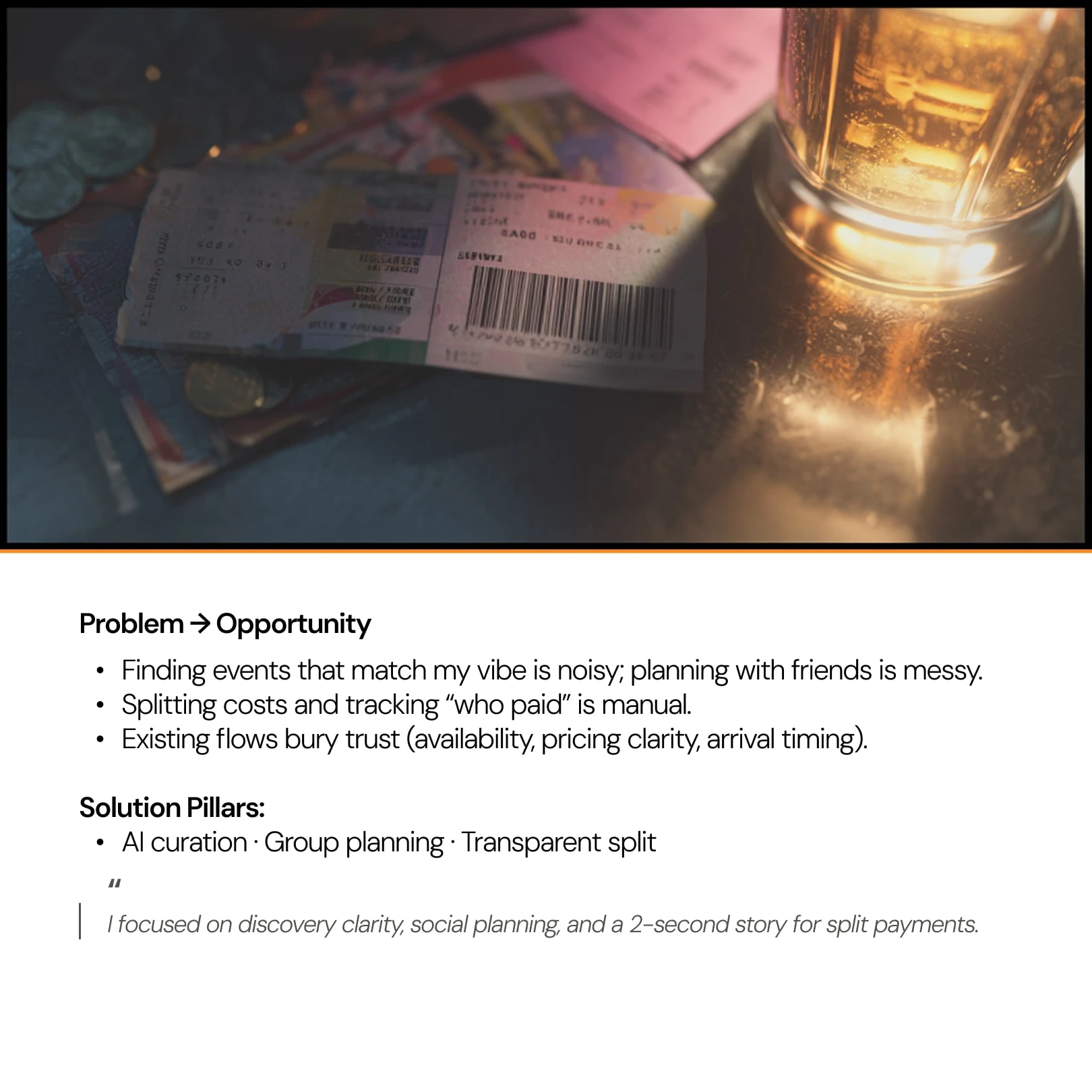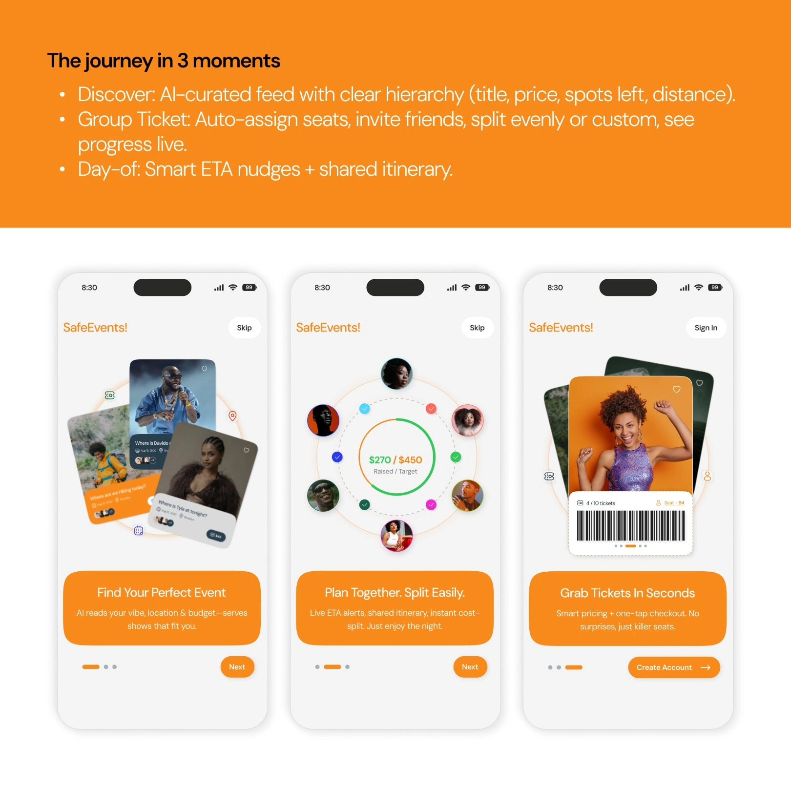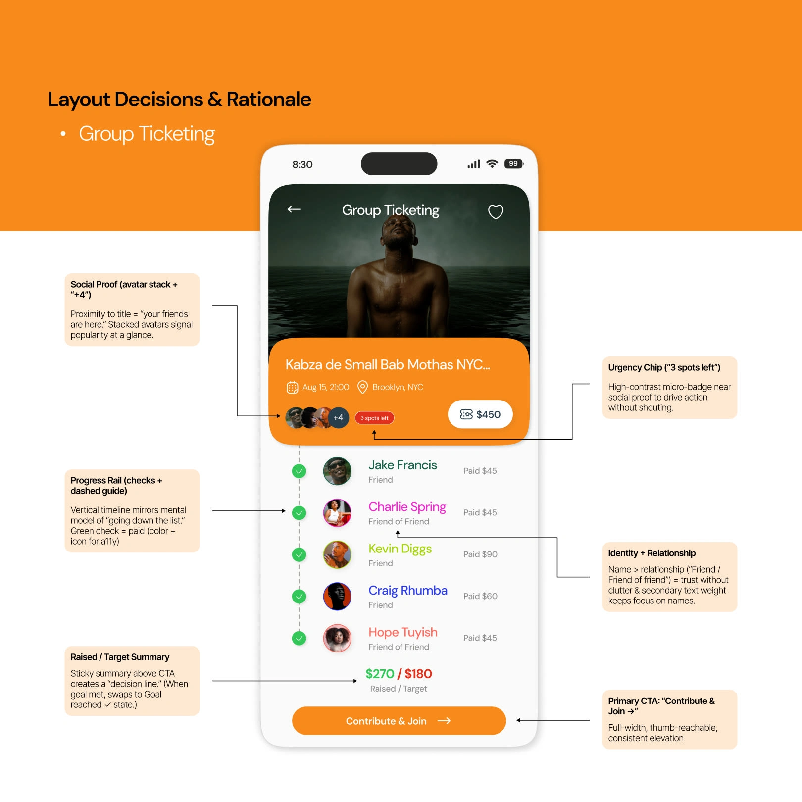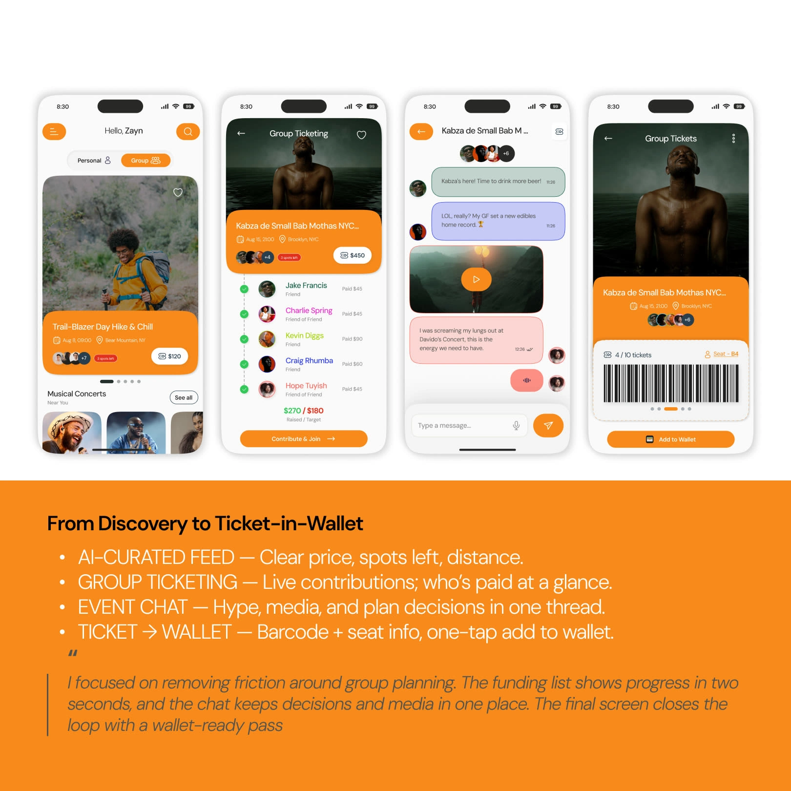 My end-to-end concept for discovering shows, booking group tickets, and keeping the crew synced in one place.