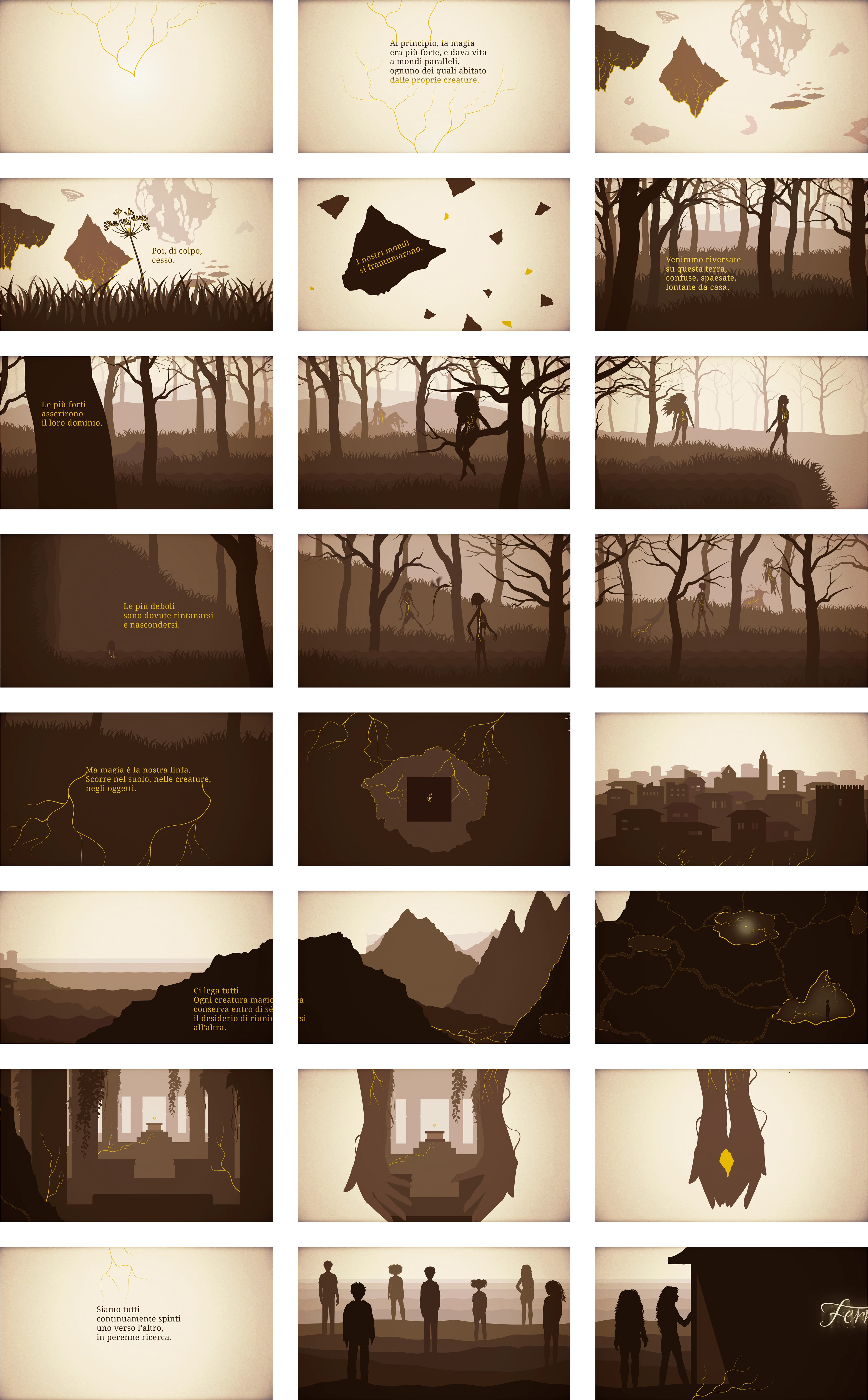 The pervasiveness of magic in this fictional world is represented by golden veins running throughout the animation and giving life to the objects and creatures they touch.
