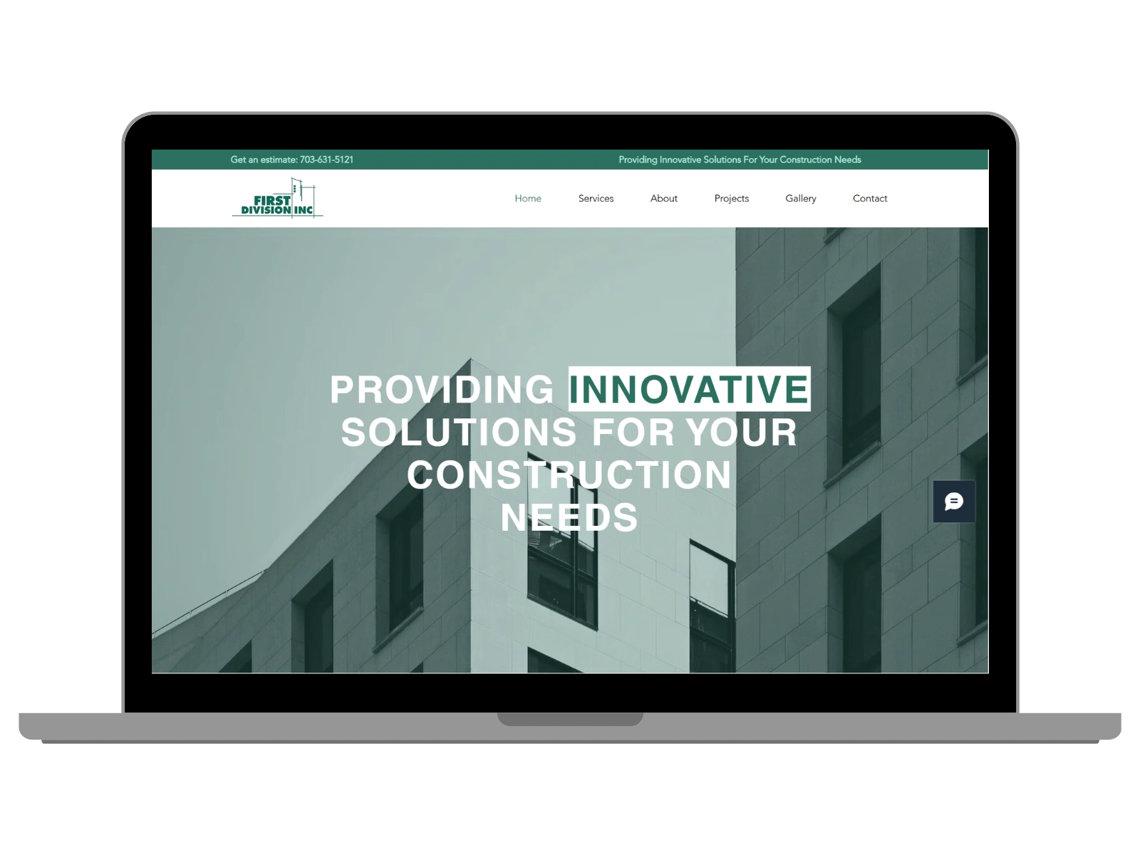 The website now presents First Division, Inc. as a contemporary, credible, and professional contractor — matching the quality of services they provide.