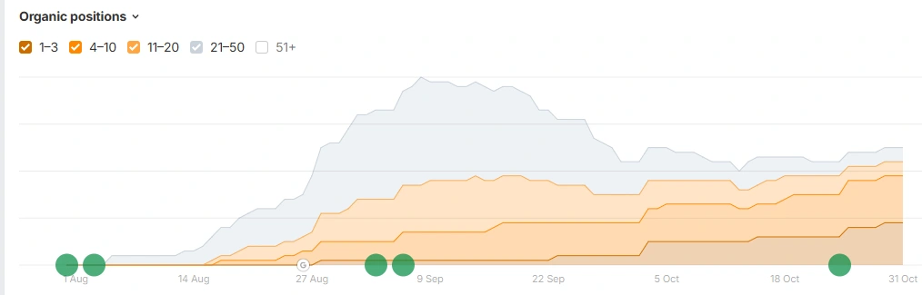 0 to over 1,000 monthly visitors, with steady improvement in keyword positions and visibility across product categories.
