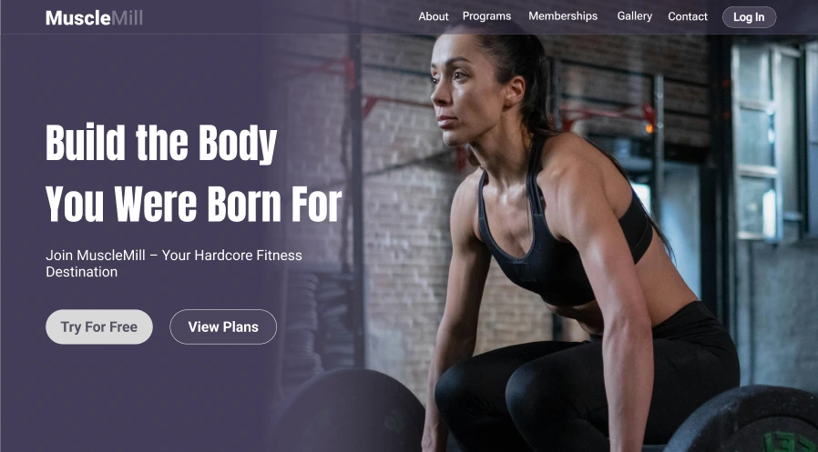 Designed a modern hero section for MuscleMill's fitness website using Figma.