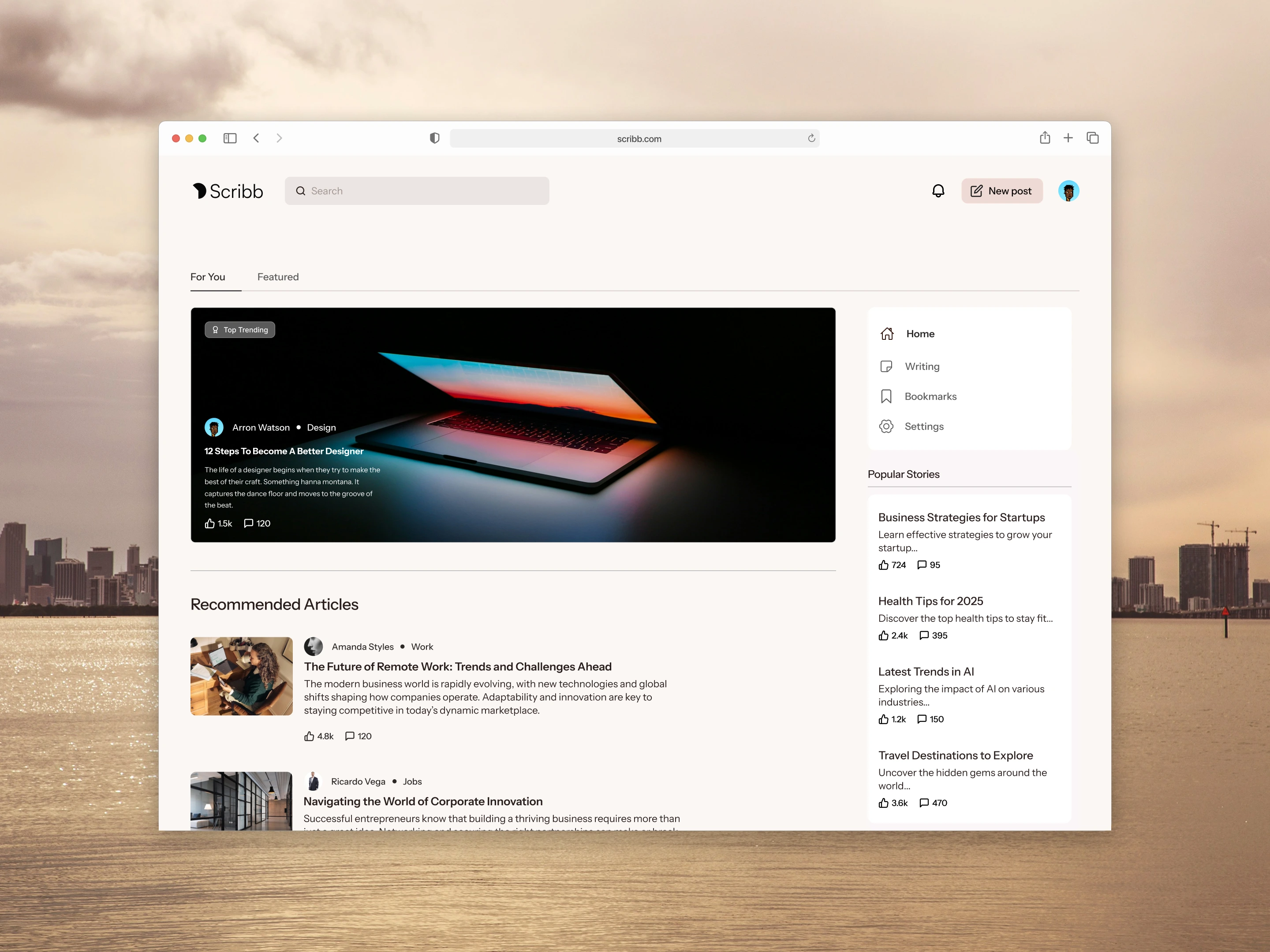 Scribb is a publishing platform for sharing stories, discovering ideas, and connecting with a creative community in an engaging, distraction-free space.