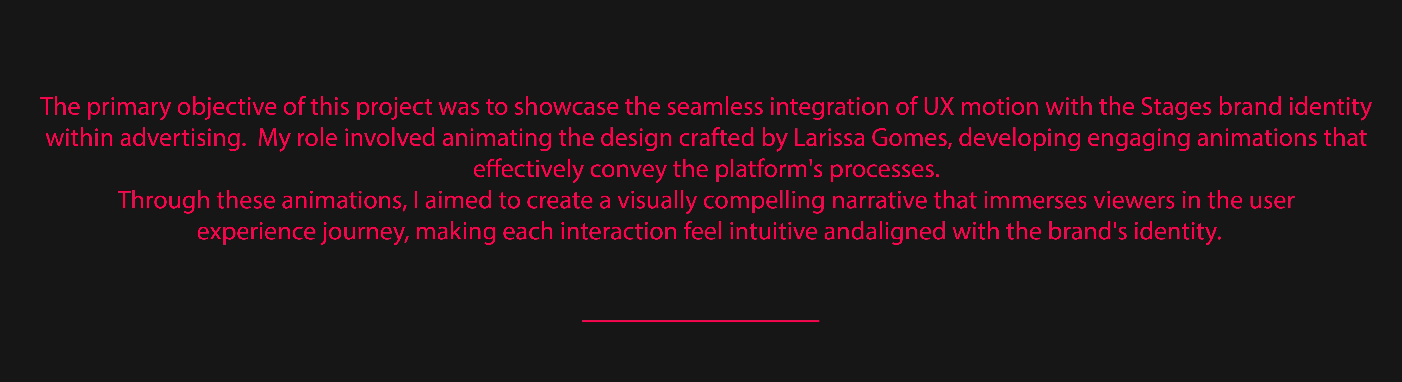 Animated Larissa Gomes’ UX design for Stages, creating motion that communicates platform processes while aligning seamlessly with the brand identity.
