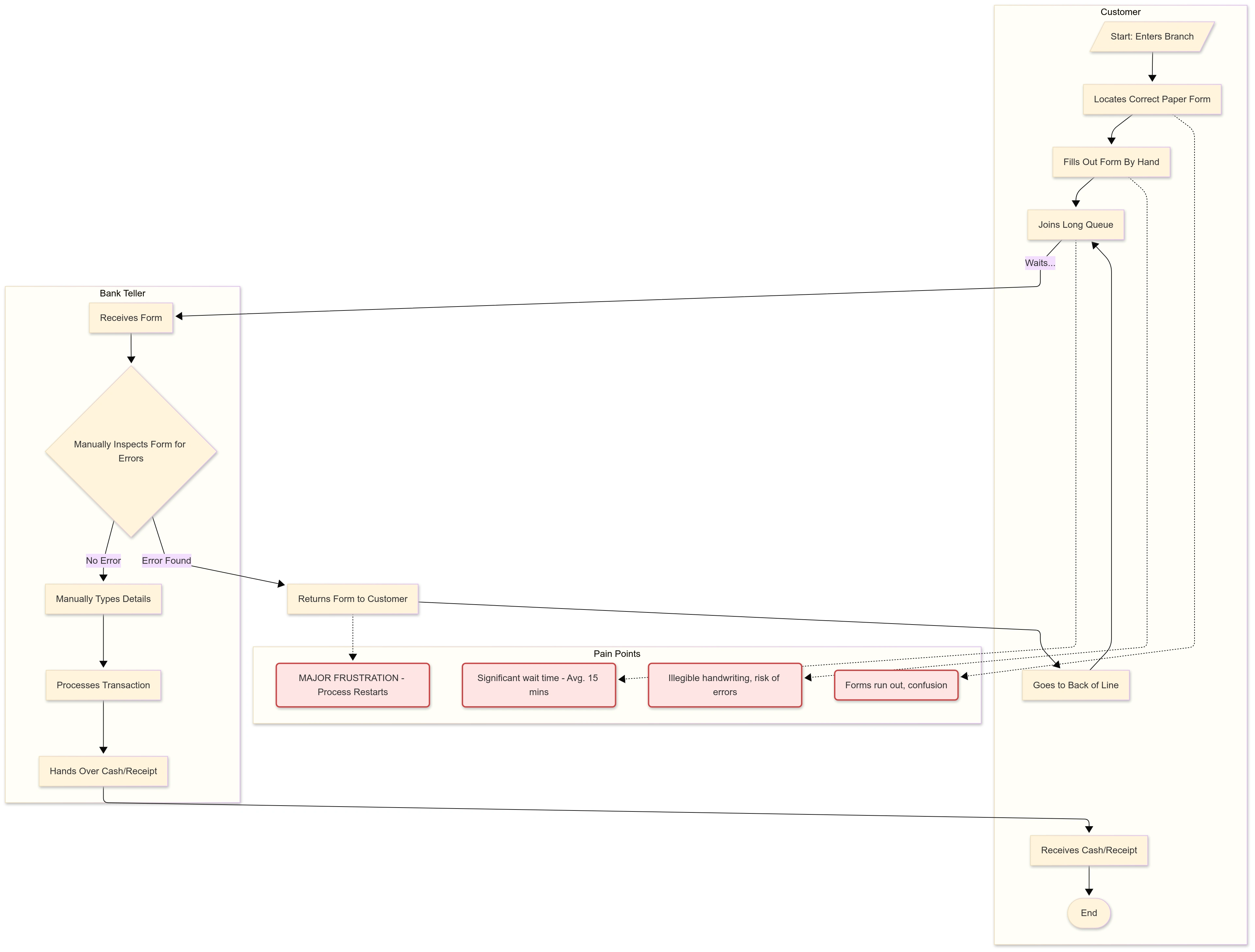 Before this project, walking into an Access Bank branch felt like a step back in time. Simple transactions like withdrawals or service requests were bogged down by a mountain of paper forms. This meant long, frustrating queues, frequent errors from illegible handwriting, and a stressful experience for both customers and the bank staff trying to keep up.