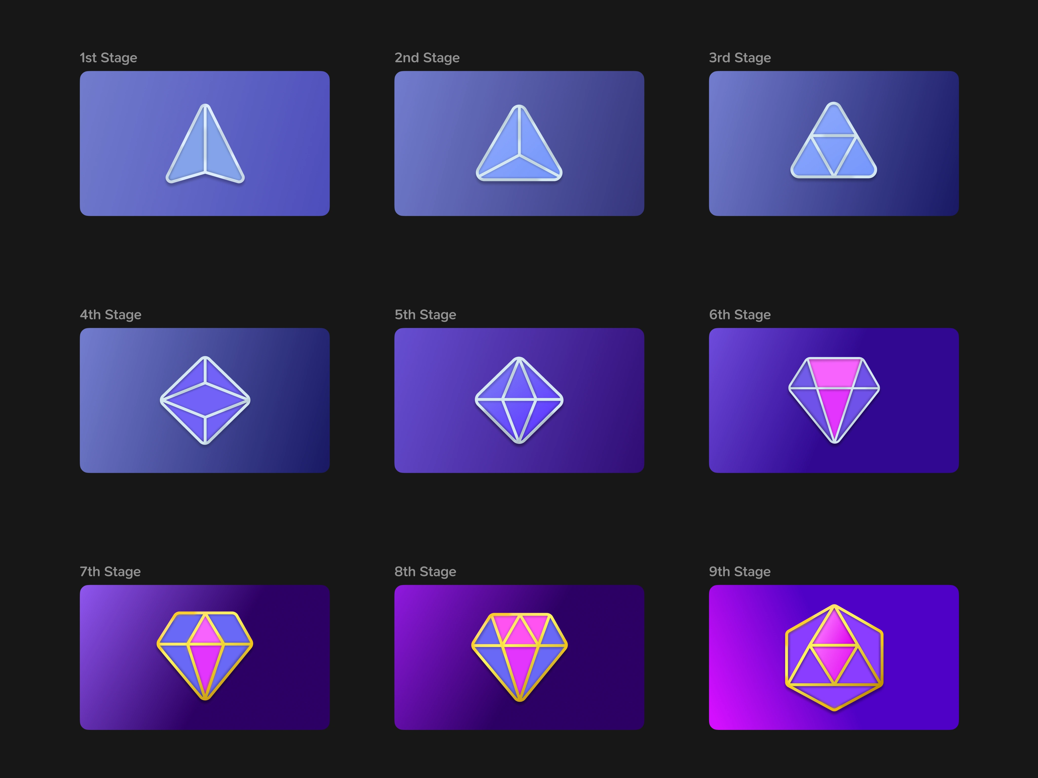 I recreated the badges from level 1 to level 50 (the maximum) to better understand how progression, status, and visual hierarchy are communicated so efficiently at such small scales.
