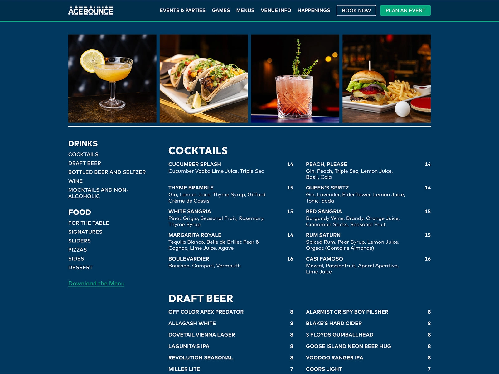 A new WordPress website was developed for AceBounce, a Chicago-based entertainment venue, in collaboration with its US marketing team.
