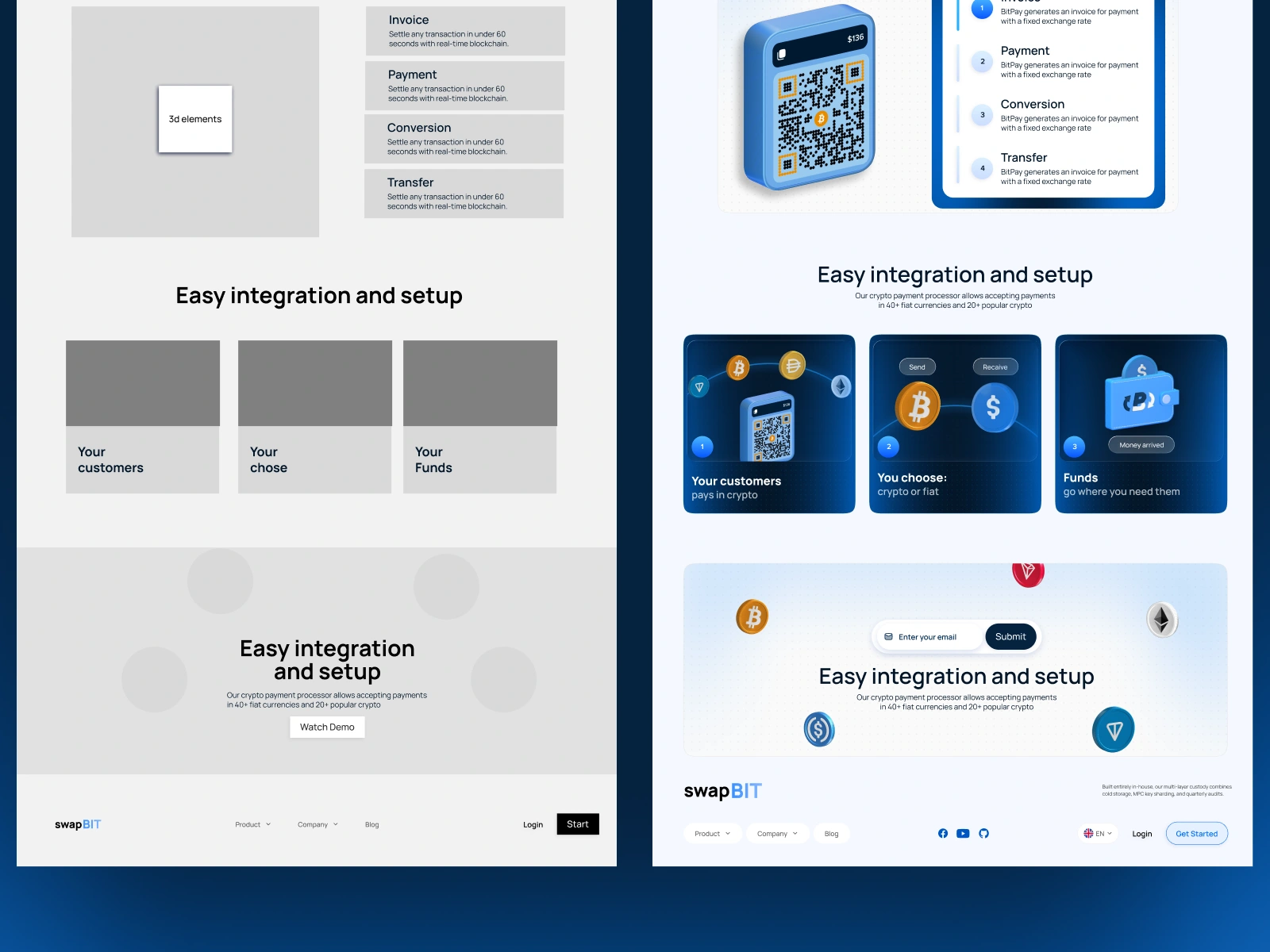 From Wireframe to High-Fidelity — Crypto Landing Page · CRO · 3D