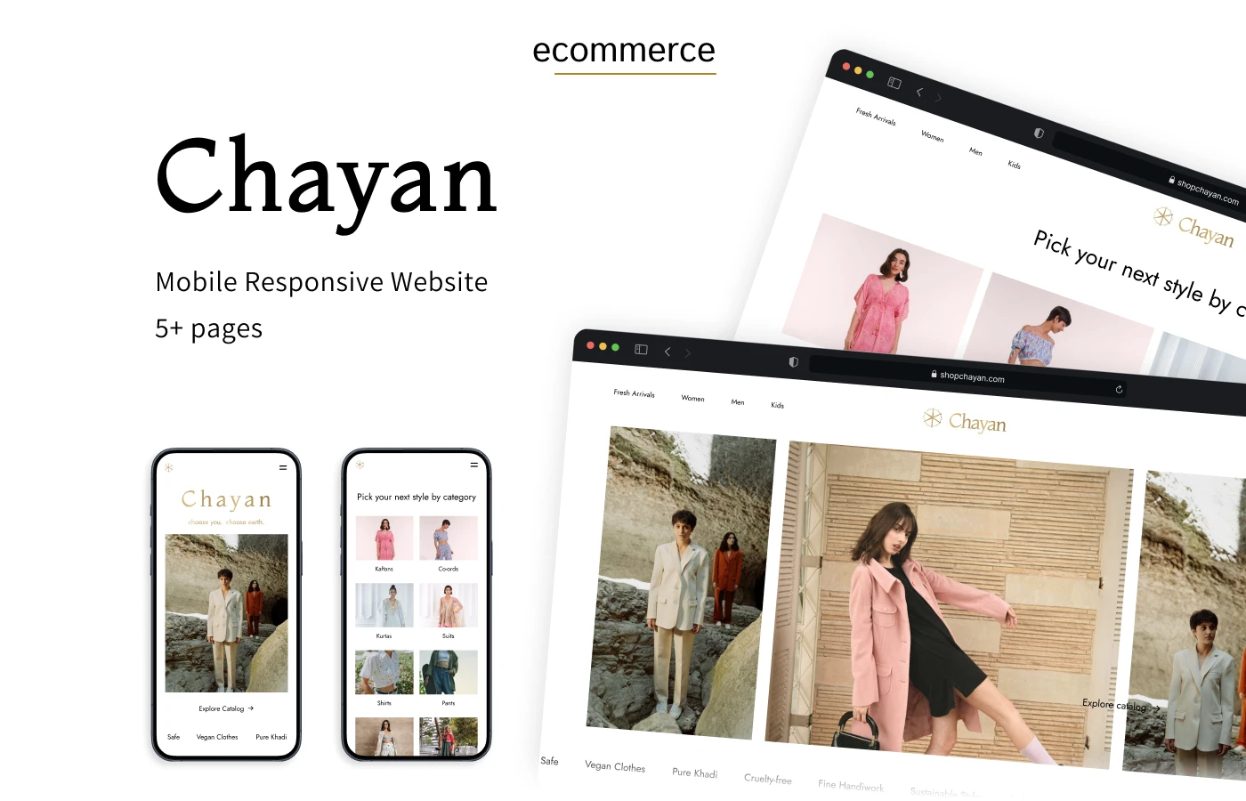 Designed minimal ecommerce website and brand logo for a small fashion boutique. Delivered landing page, browsing page, item details, about page and blog.