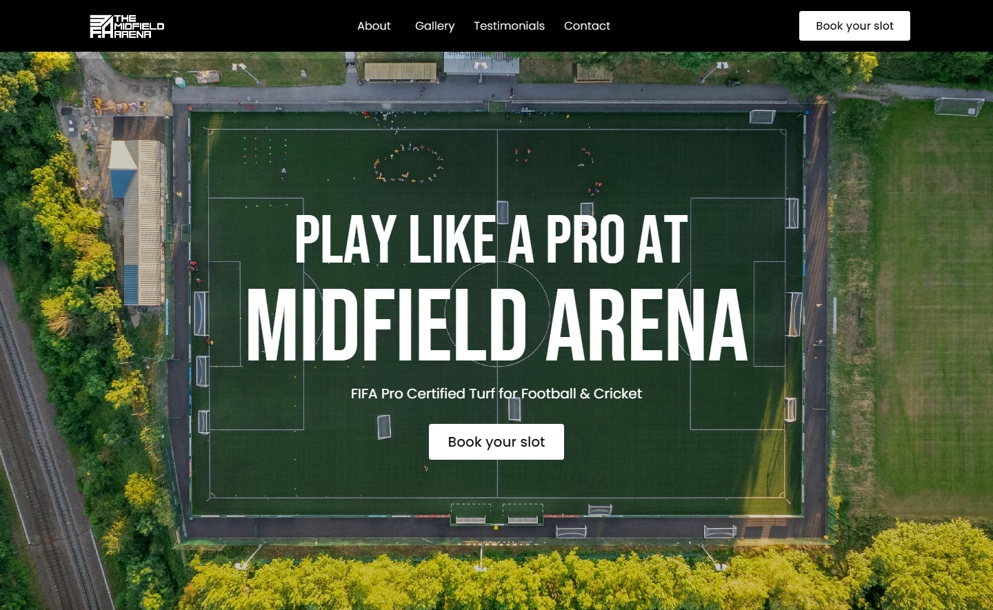 A clean, user-friendly website for a sports turf / arena in Mumbai, designed to attract players, bookings, and showcase the facility’s premium features.